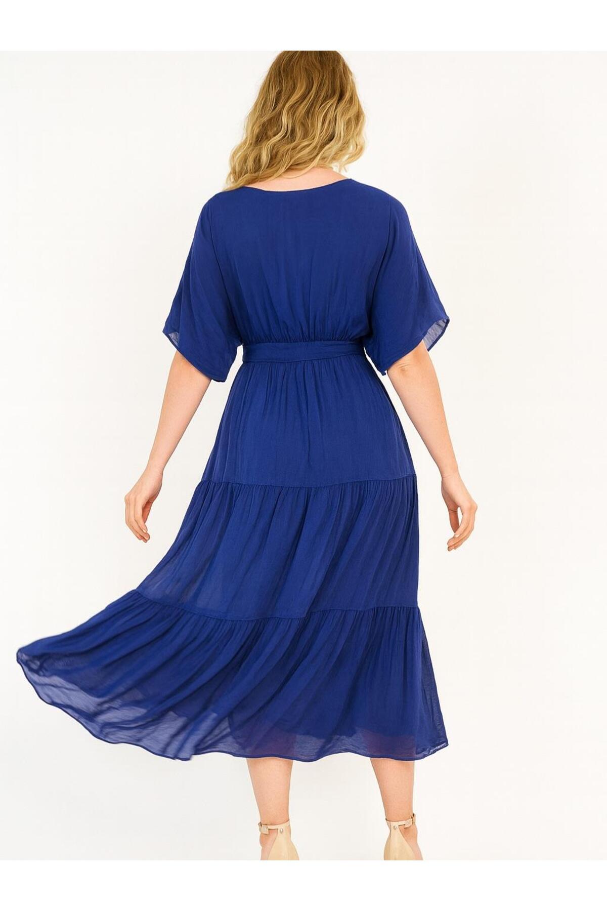 İtalyan İpek Belden Bağlamalı Elbise - SAKS MAVİ İtalyan İpek Belden Bağlamalı Elbise - SAKS MAVİ HEB3803 Standart