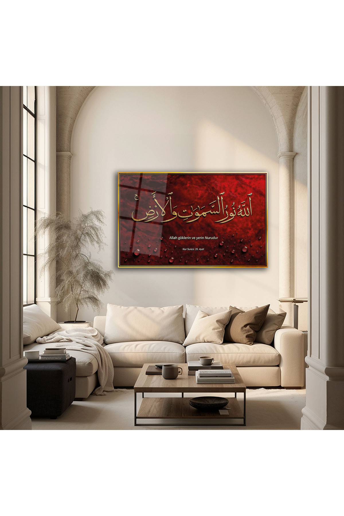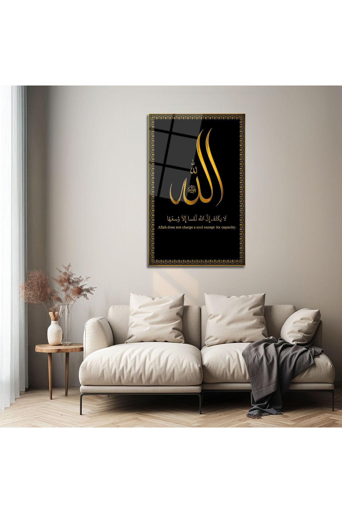 Altın Detaylı Allah Lafzı ve Ayet Tasarımlı Dekoratif Cam Tablo Altın Detaylı Allah Lafzı ve Ayet Tasarımlı Dekoratif Cam Tablo 5147 150 x 95