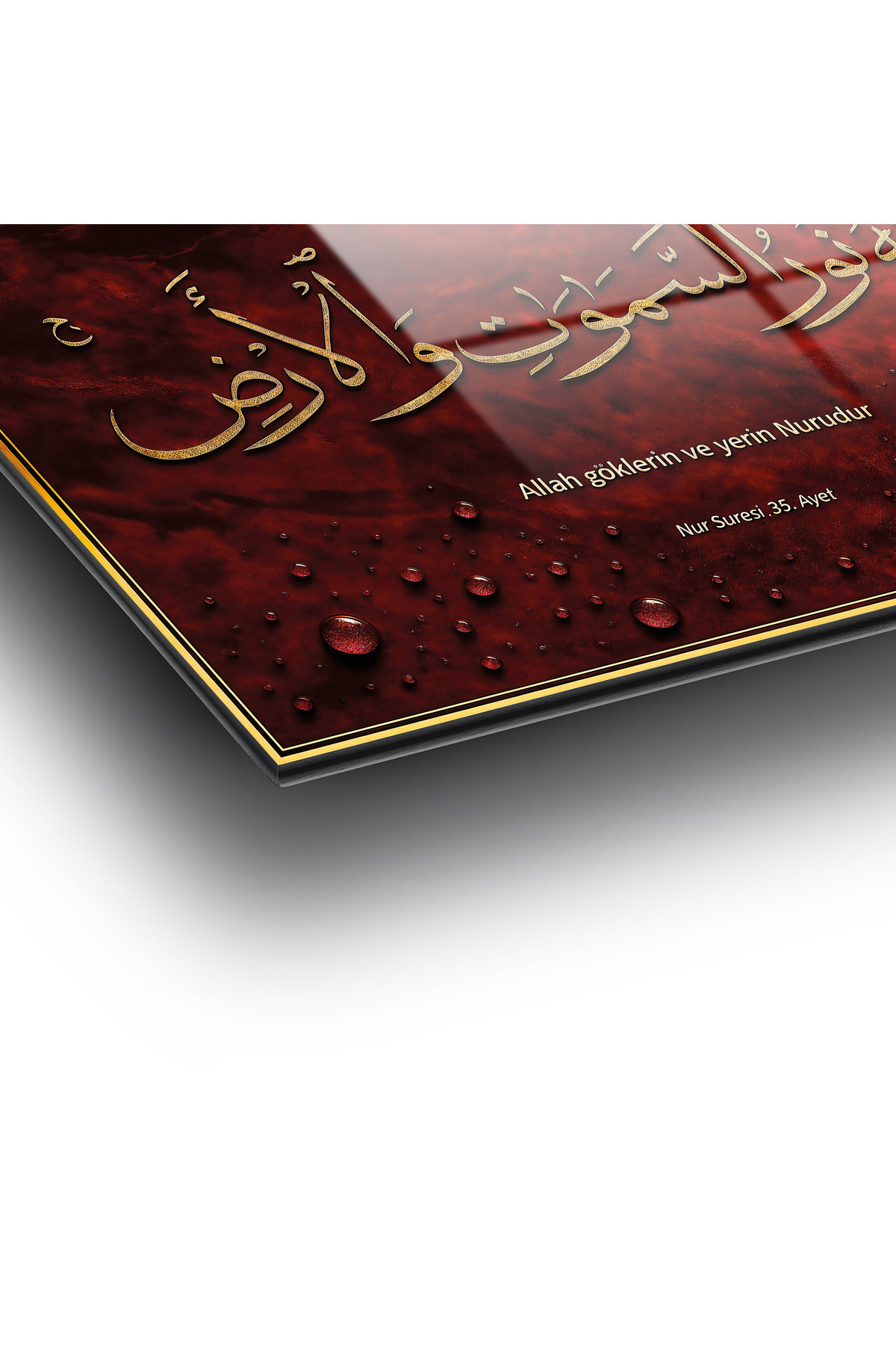 Kırmızı Zemin Üzerinde Altın Hat Sanatıyla Nur Suresi Ayeti Kırmızı Zemin Üzerinde Altın Hat Sanatıyla Nur Suresi Ayeti 5148 150 x 95