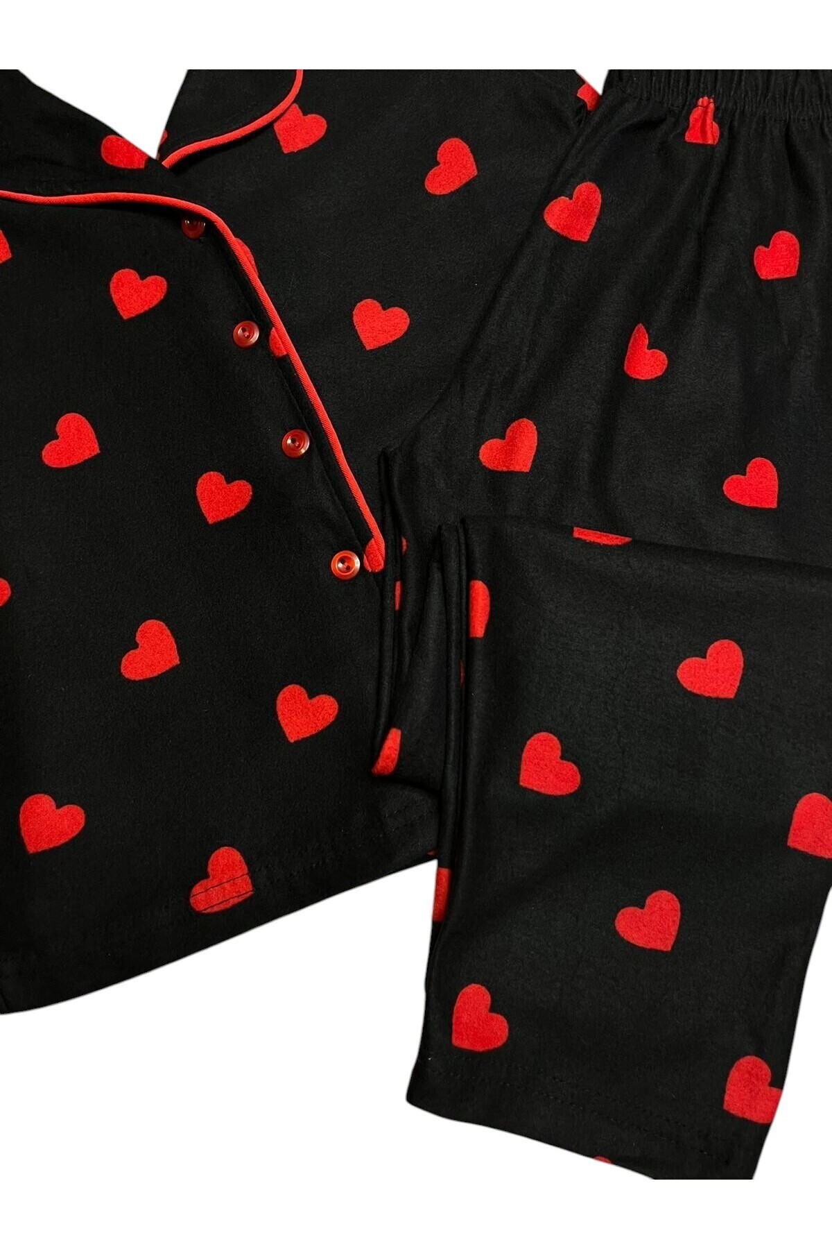 Anne-Kız Çocuk Pamuklu Kumaş Süet Siyah Renk Kırmızı Kalp Ve Biyeli Gömlek Yaka Düğmeli Pijama Anne-Kız Çocuk Pamuklu Kumaş Süet Siyah Renk Kırmızı Kalp Ve Biyeli Gömlek Yaka Düğmeli Pijama kısüsi 13 Yaş
