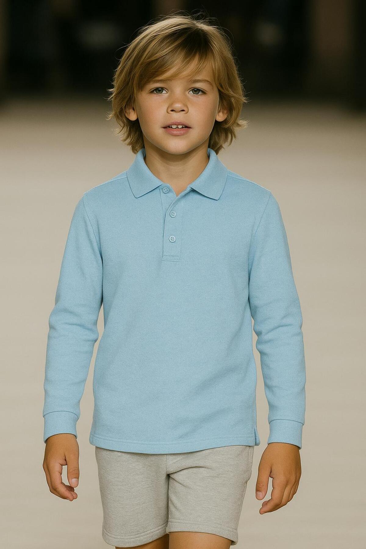 Unısex Cocuk Düz Renk Basic Polo Yaka Uzun Kol Okul T-shırt Unısex Cocuk Düz Renk Basic Polo Yaka Uzun Kol Okul T-shırt mavi8585 13 Yaş