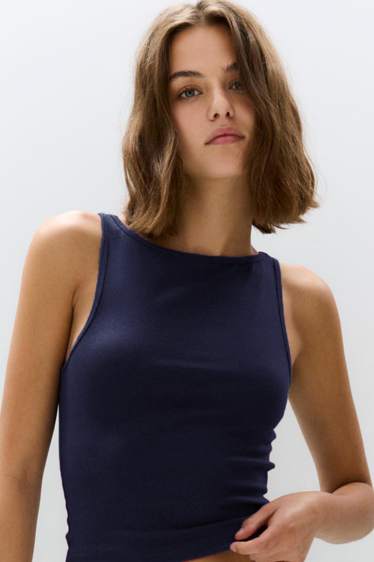 Kadın Lacivert %100 Pamuk Basic Kolsuz Top Kadın Lacivert %100 Pamuk Basic Kolsuz Top 8725 L