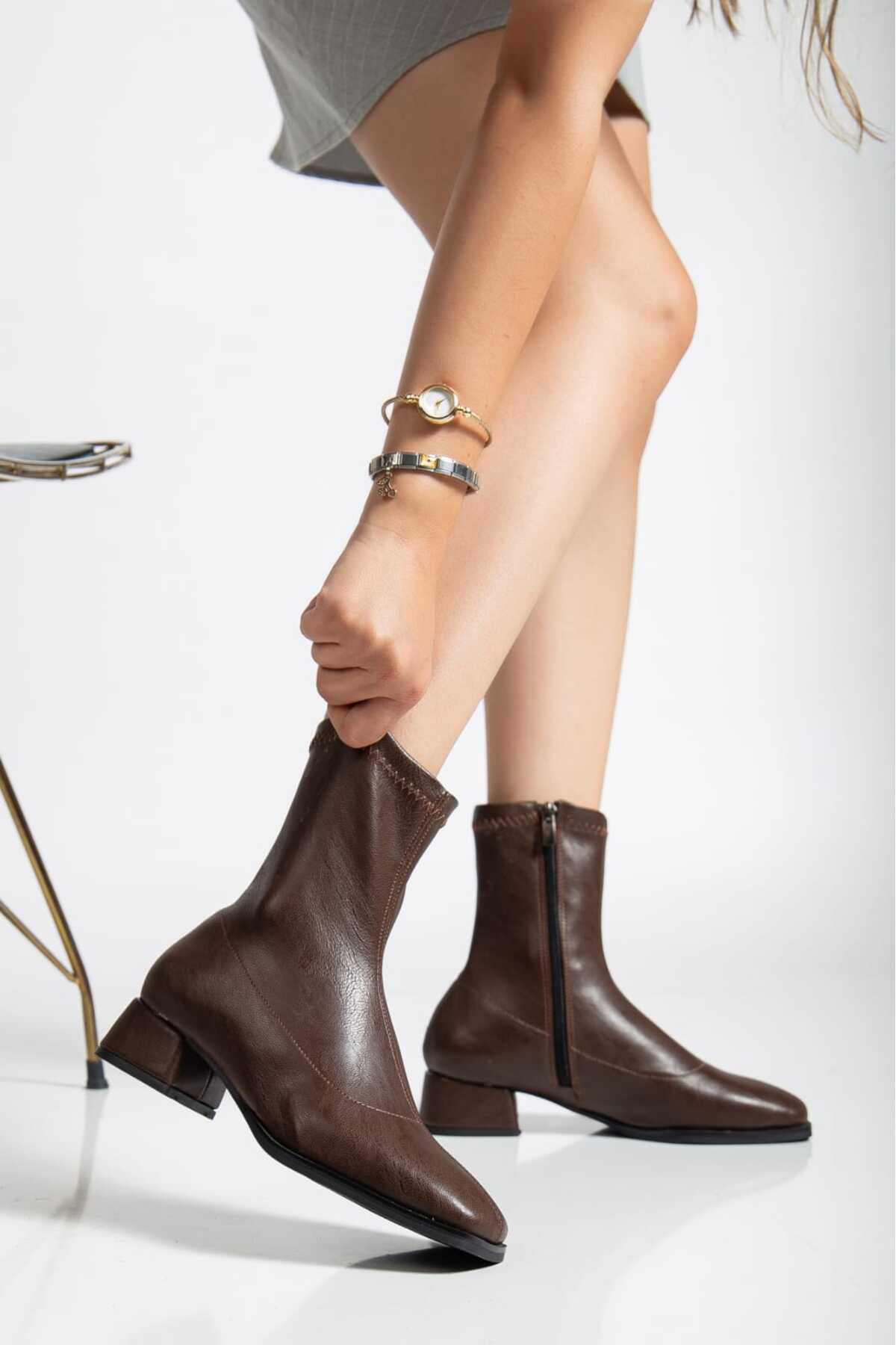 Frosty Alçak Topuklu Tpu Taban Acı Kahverengi Küt Burunlu Yandan Fermurarlı Streç Bot Frosty Alçak Topuklu Tpu Taban Acı Kahverengi Küt Burunlu Yandan Fermurarlı Streç Bot Eylülden_Frosty 40