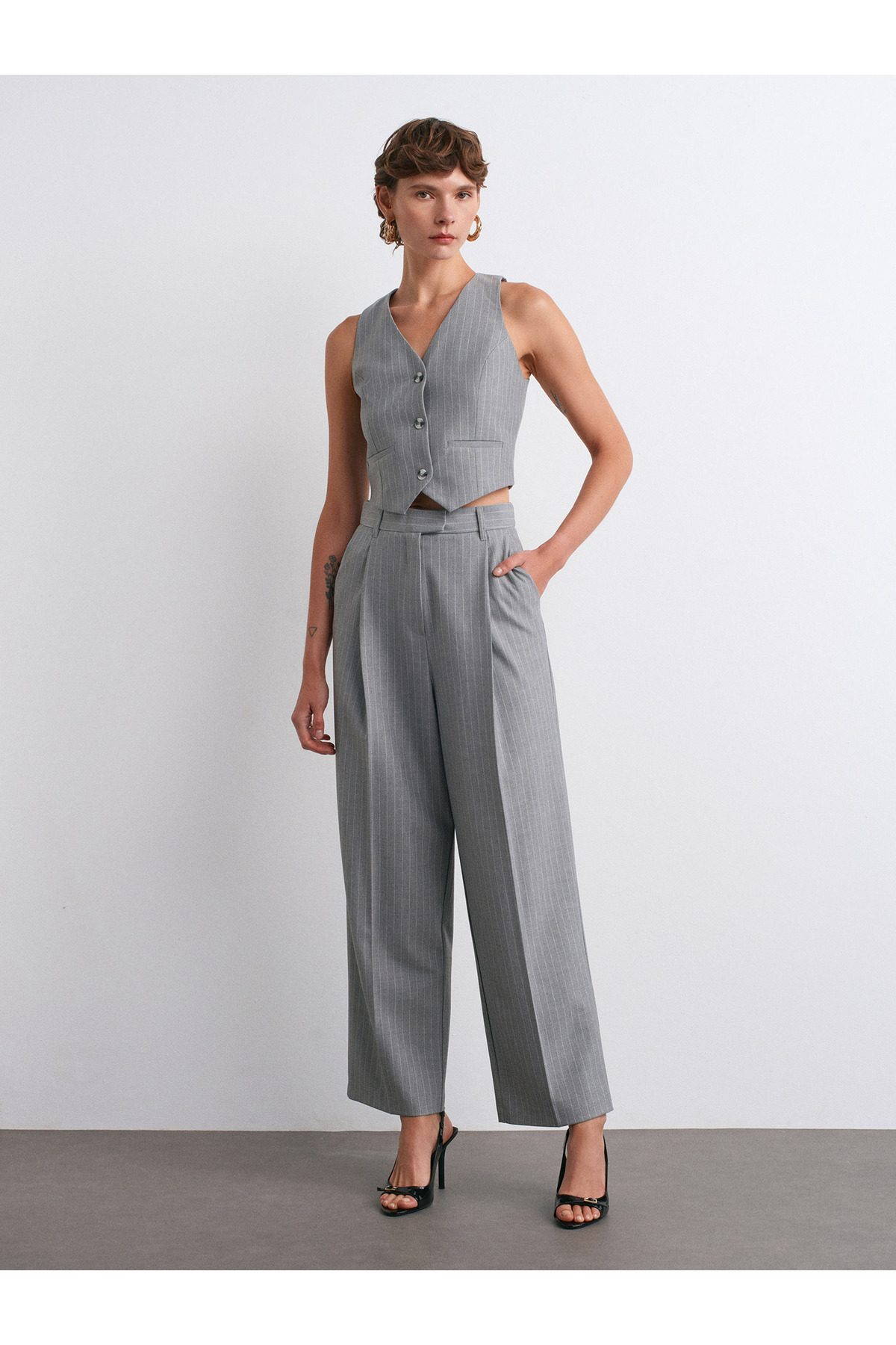 72153 Kemerli Yüksek Bel Pantolon-Gri 72153 Kemerli Yüksek Bel Pantolon-Gri 101A72153 40