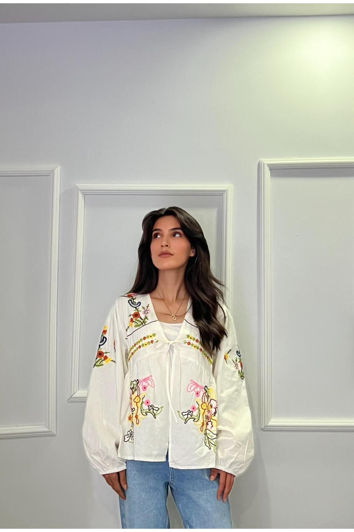 Bağlama Detaylı Nakış İşlemeli Bluz Bağlama Detaylı Nakış İşlemeli Bluz SEV0032- 5353 L