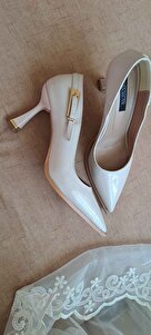 Poni Krem Cilt Toka Detaylı Topuklu Kadın Stiletto Poni Krem Cilt Toka Detaylı Topuklu Kadın Stiletto poni