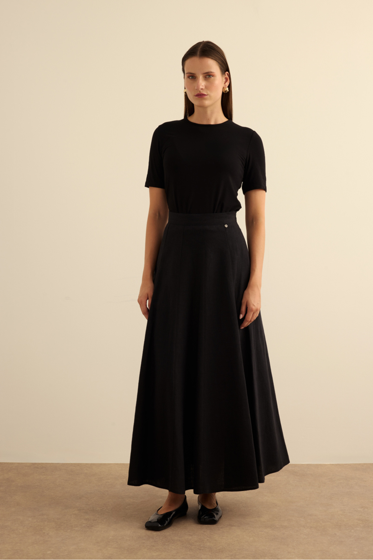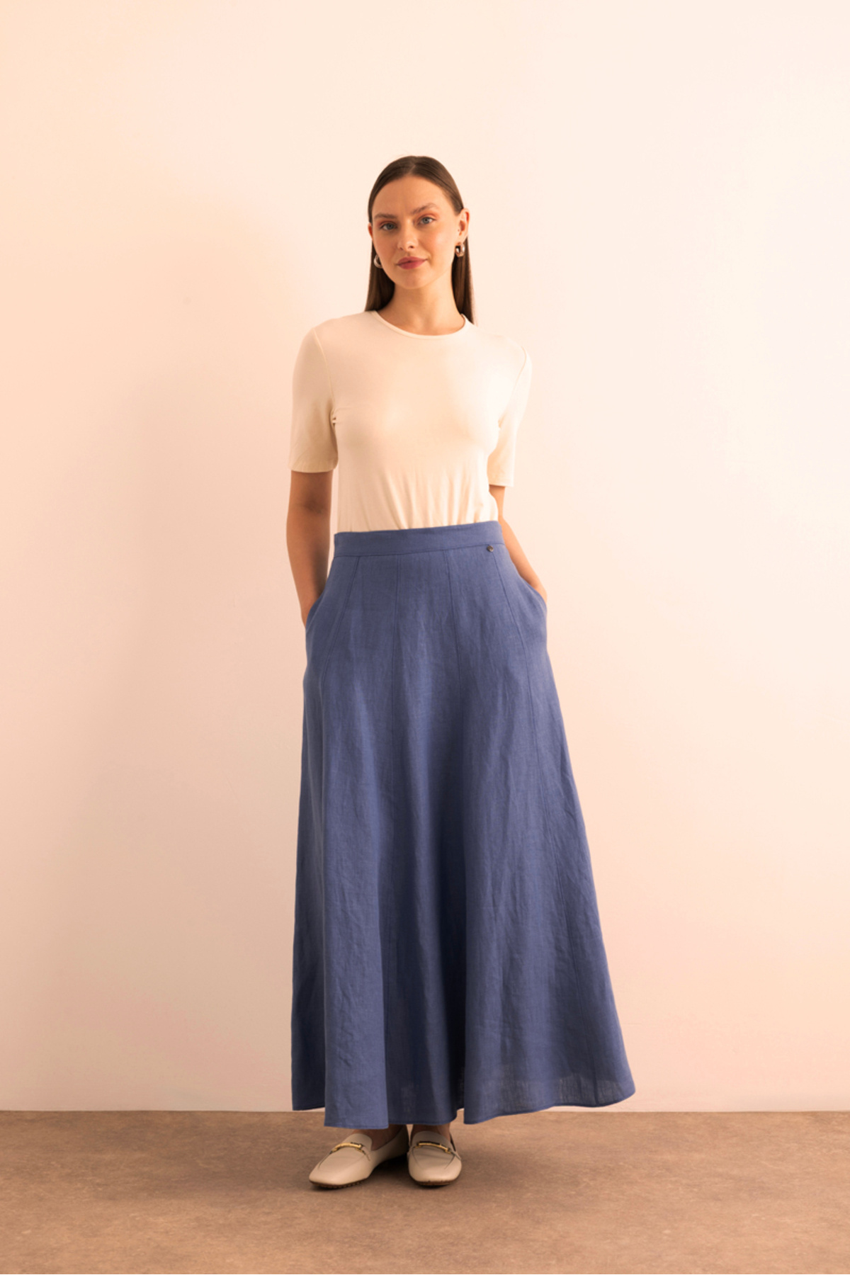 Kloş Yırtmaçllı Keten Etek Kloş Yırtmaçllı Keten Etek 25SS01258111 L