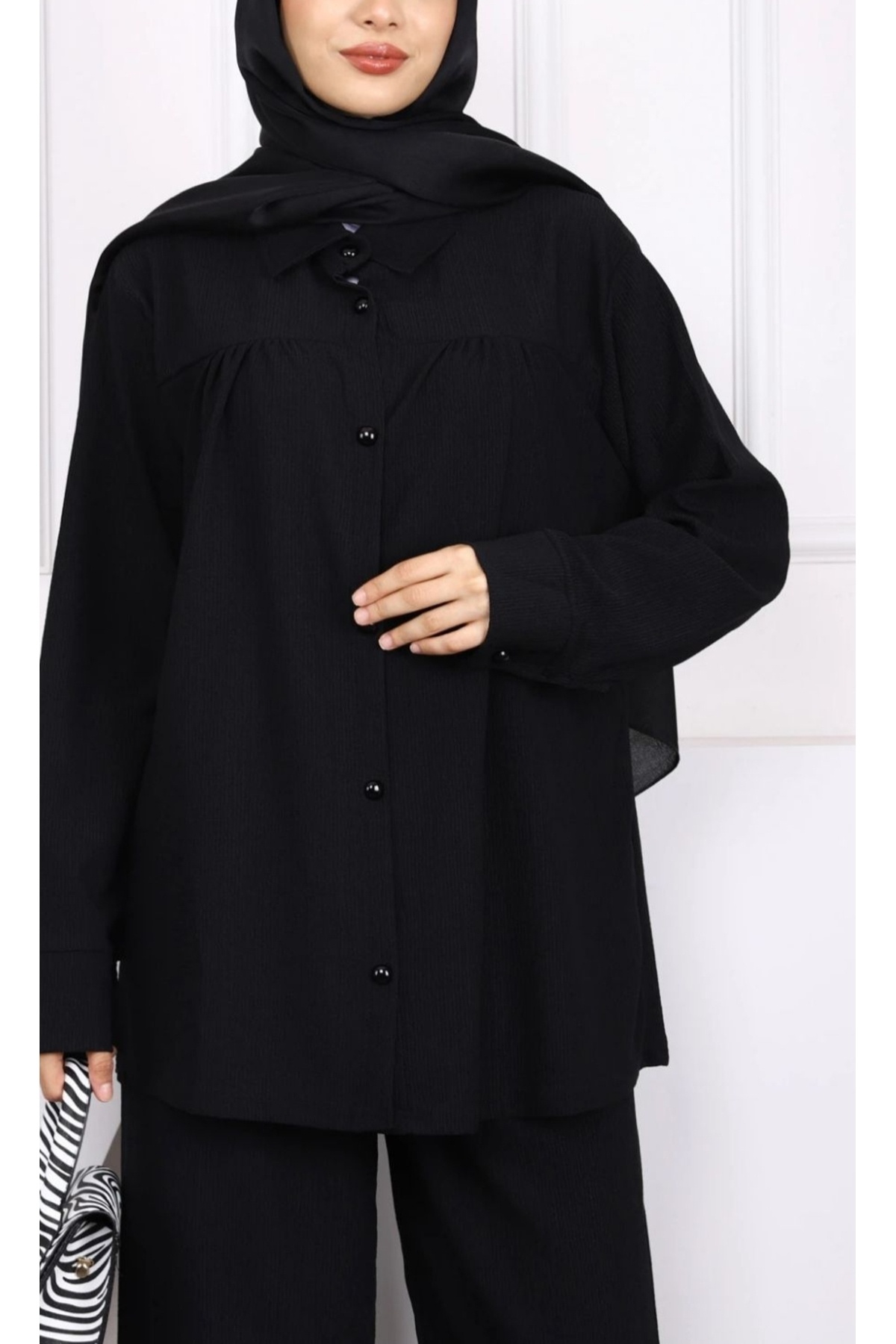 Siyah Bürümcük Gömlek Pantolonlu Takım Siyah Bürümcük Gömlek Pantolonlu Takım TST-002 2XL