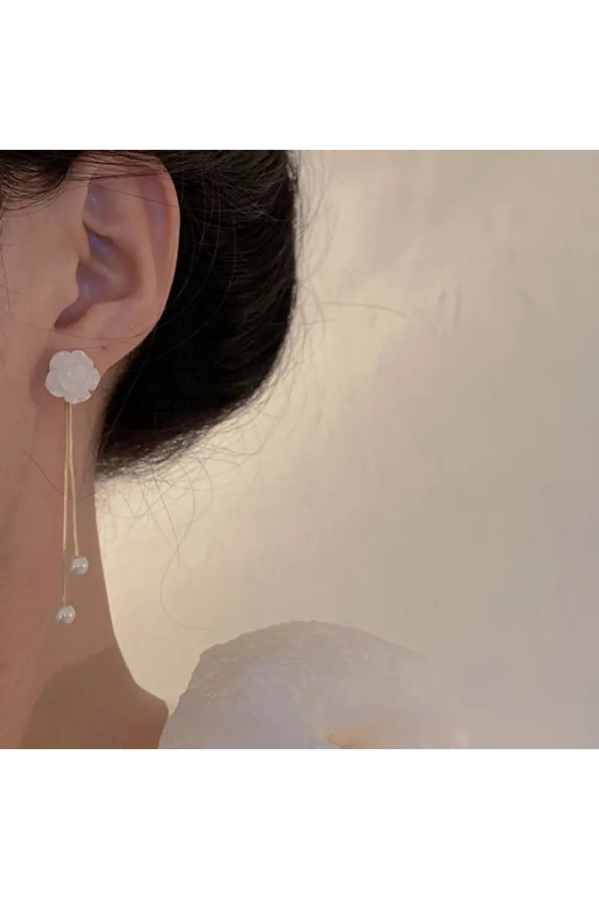 Çelik Sallantılı Beyaz Gül İncili Küpe Çelik Sallantılı Beyaz Gül İncili Küpe gülküpe تک سایز