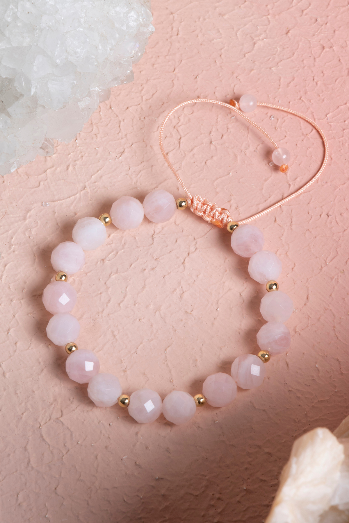 Sertifikalı Pembe Kuvars, Hematit Fasetli Doğal Taş Makrome Bileklik Sertifikalı Pembe Kuvars, Hematit Fasetli Doğal Taş Makrome Bileklik osm-8683817060775 Standart