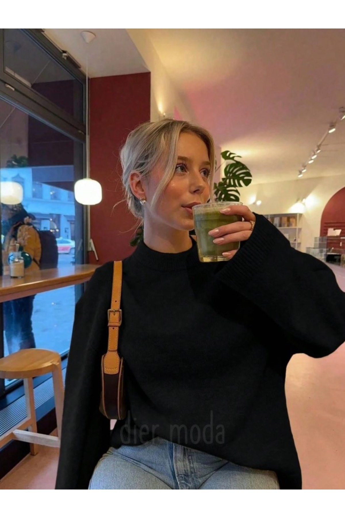 Bisiklet Yaka Oversize Triko Kazak Fmoda1972 Bisiklet Yaka Oversize Triko Kazak Fmoda1972 L