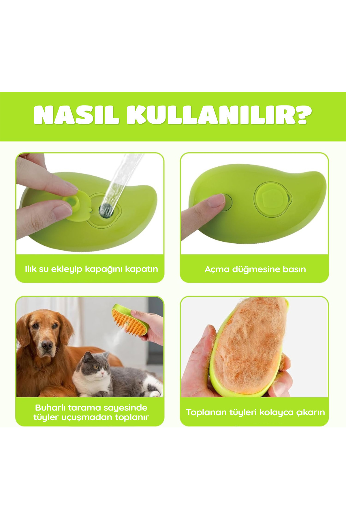 - Diğer Özellikler : Kedi & Köpekler İçin Buhar Masajlı Tüy Temizleme Fırçası