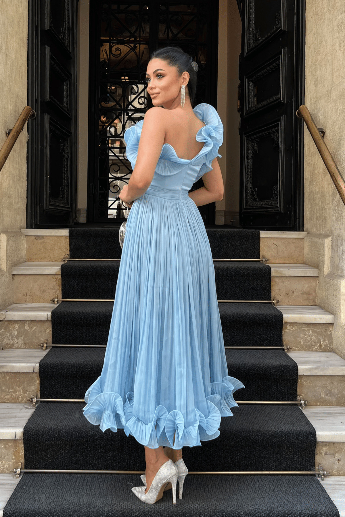 Şifon Kumaş Tek Kol Abiye Elbise - BEBE MAVİSİ Şifon Kumaş Tek Kol Abiye Elbise - BEBE MAVİSİ GYM-157 42