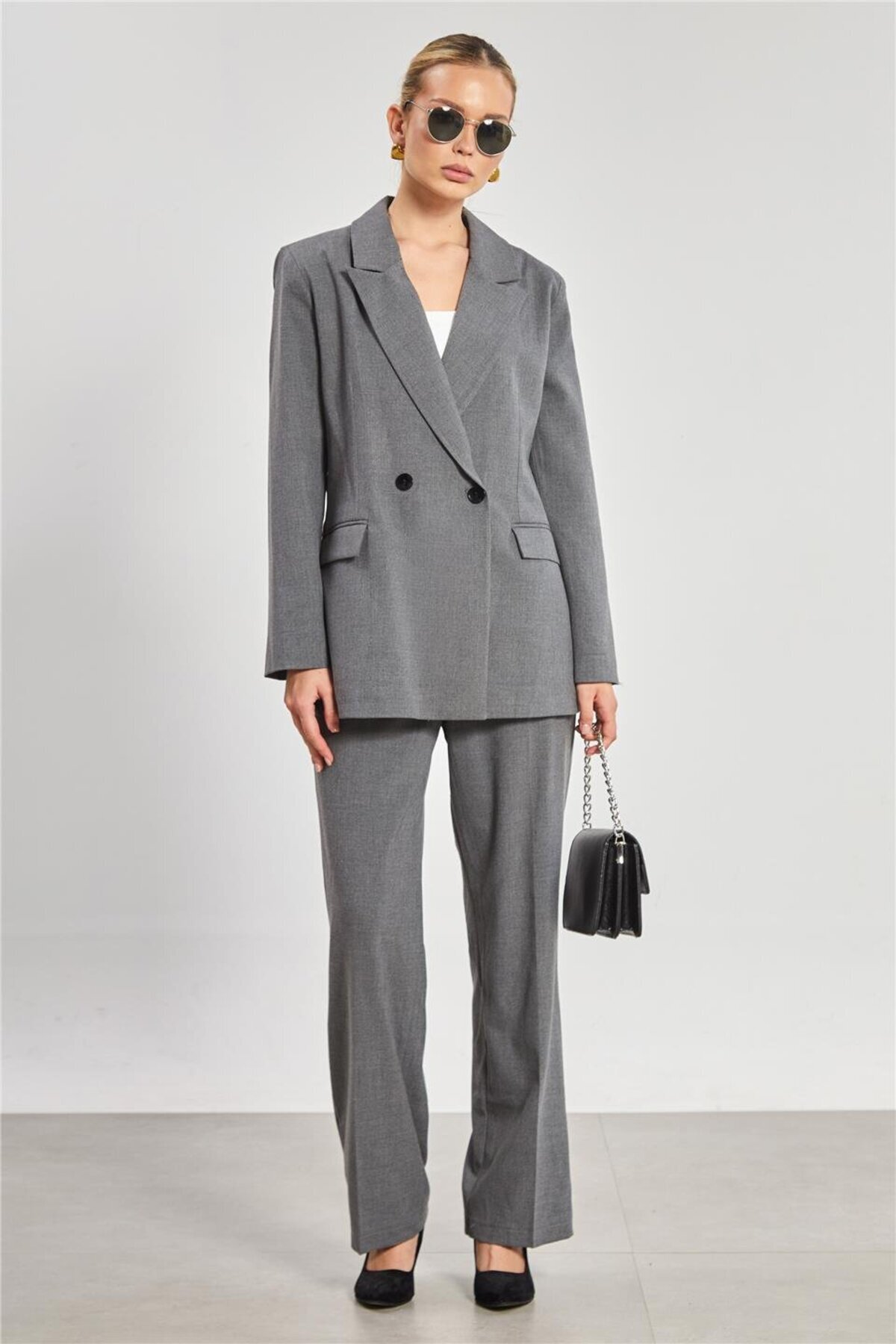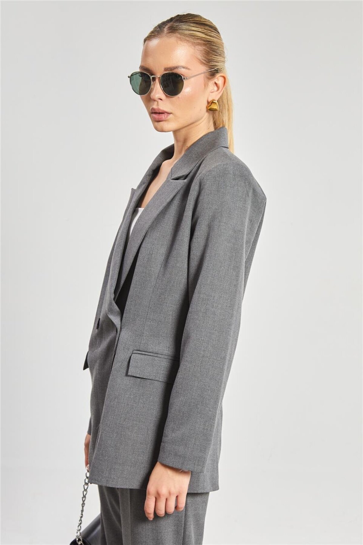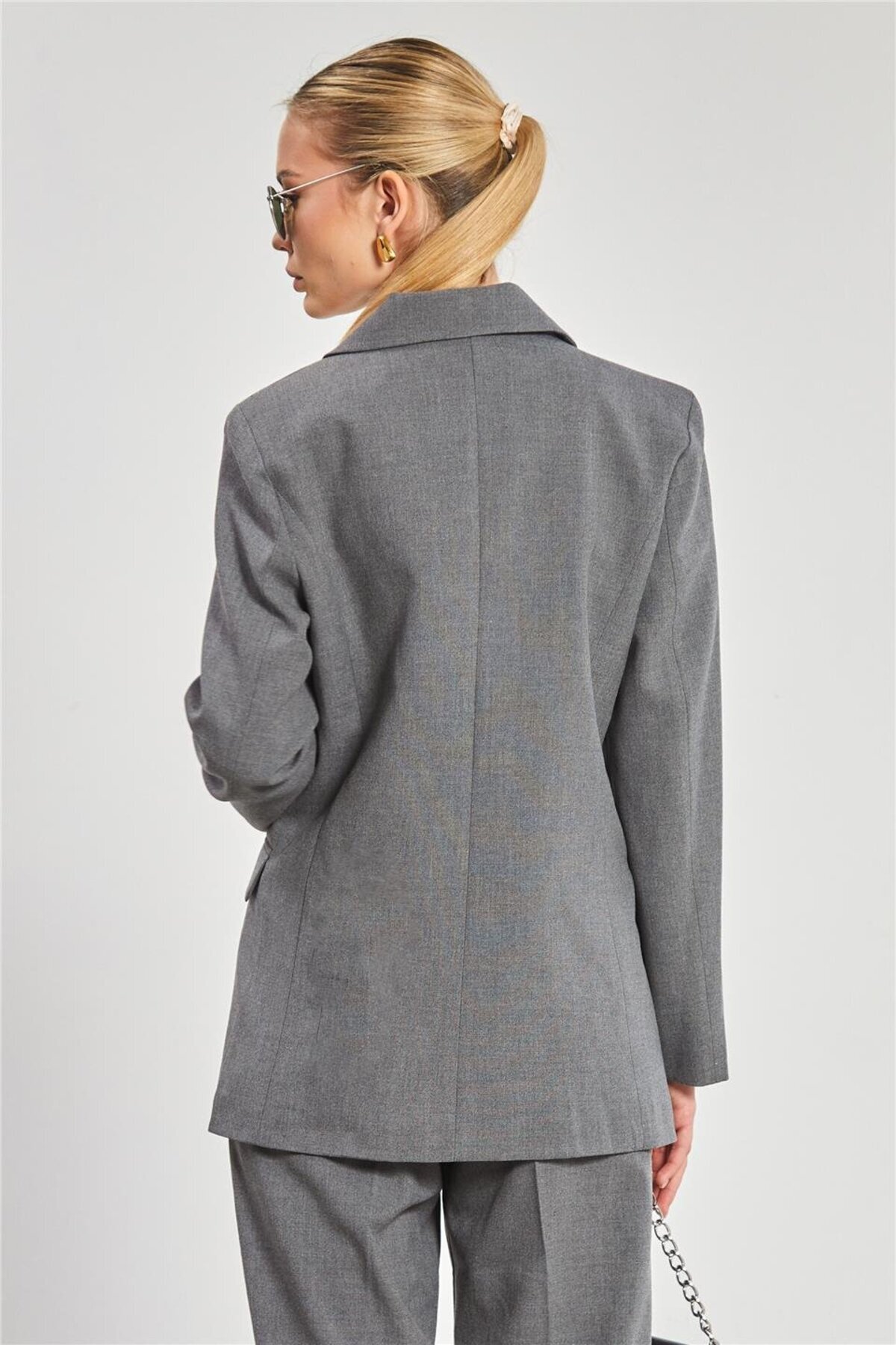Kadın Çift Düğmeli Blazer Ceket - Okul Gri Kadın Çift Düğmeli Blazer Ceket - Okul Gri 992-25M50002 XL