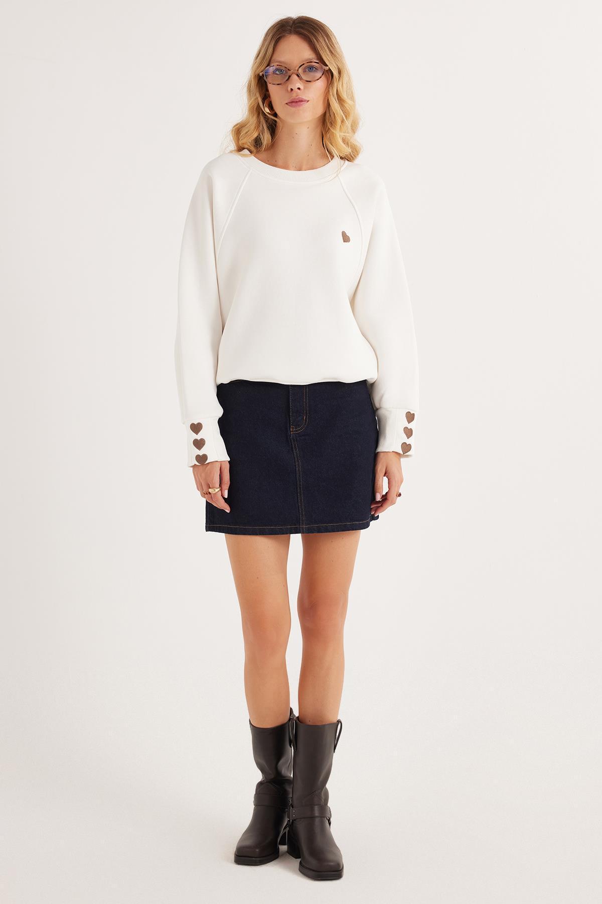 Kadın Regular Fit Klasik Kesim %100 Pamuk Baskılı Bisiklet Yaka Beyaz Sweatshirt Kadın Regular Fit Klasik Kesim %100 Pamuk Baskılı Bisiklet Yaka Beyaz Sweatshirt SW250012 L