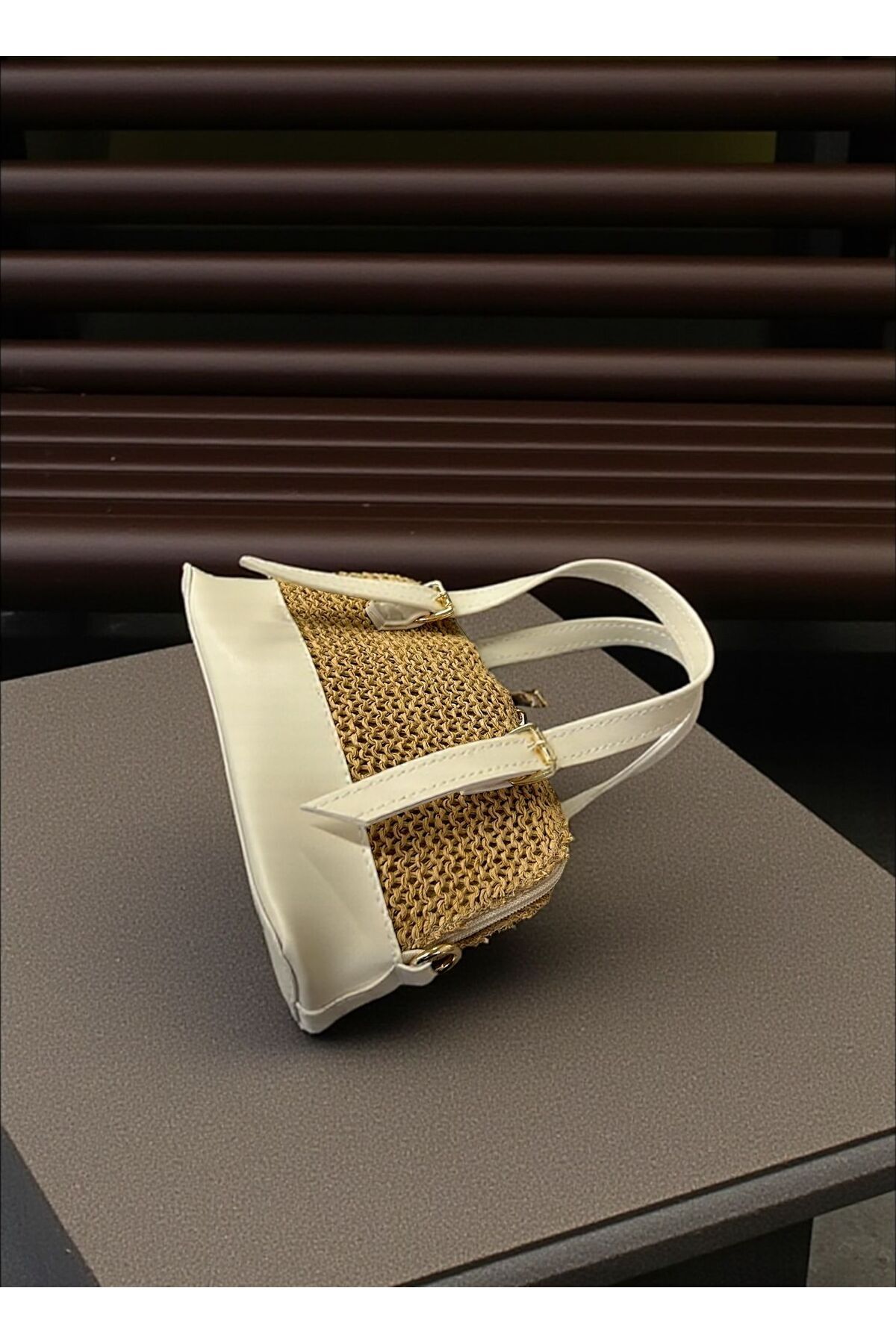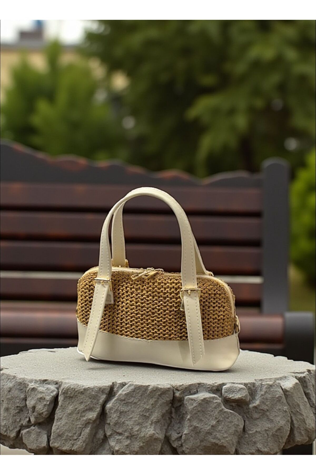 Kadın Kahve Örgü Dokulu Özel Tasarım Kremrengi Baget Çanta Kadın Kahve Örgü Dokulu Özel Tasarım Kremrengi Baget Çanta BNC5899knc Standart