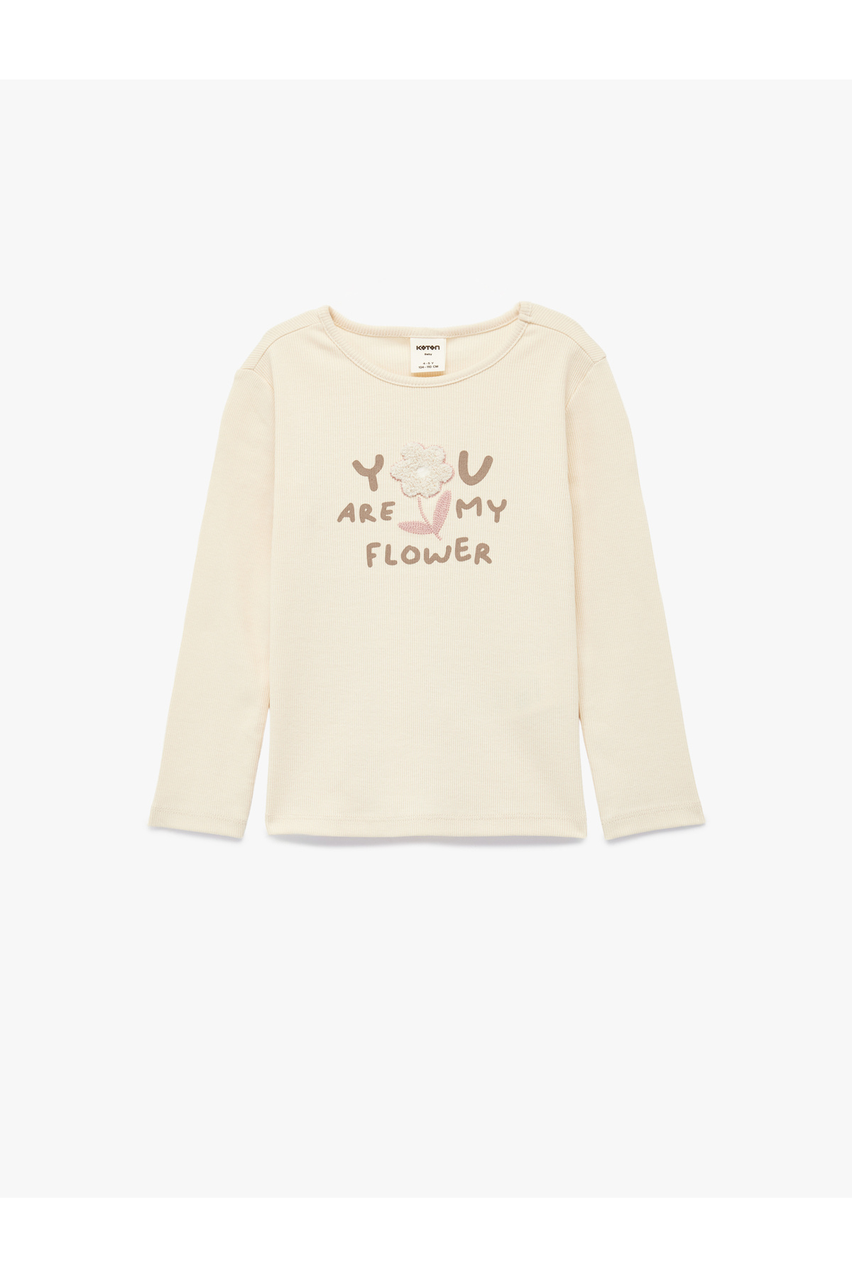 Pamuklu Bisiklet Yaka Aplike Detaylı Ekru Kız Bebek Uzun Kollu T-shirt 6WMG10087AK Pamuklu Bisiklet Yaka Aplike Detaylı Ekru Kız Bebek Uzun Kollu T-shirt 6WMG10087AK 4-5 Yaş