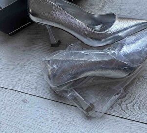 Ernio Gümüş Kırışık Rugan Topuklu Kadın Stiletto Ernio Gümüş Kırışık Rugan Topuklu Kadın Stiletto 40