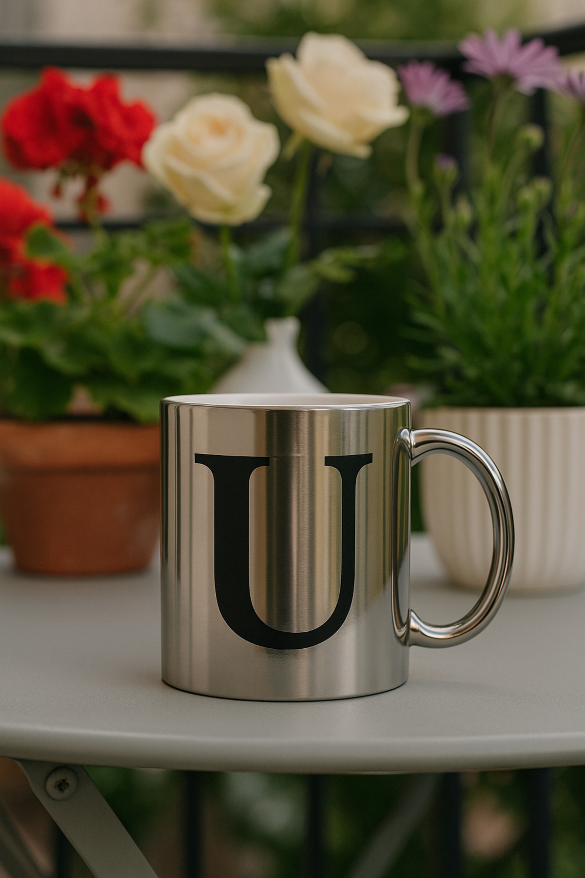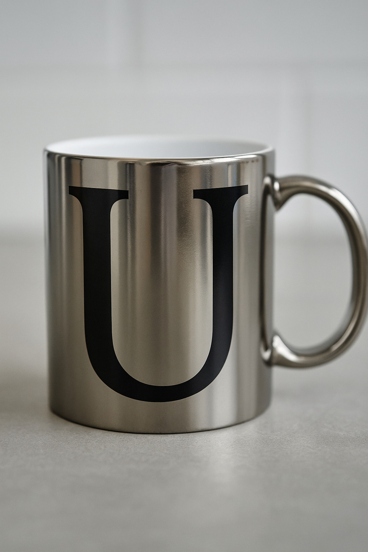 U Harfli Yazı Baskılı Gümüş Renk Büyük Boy Kupa Bardak U Harfli Yazı Baskılı Gümüş Renk Büyük Boy Kupa Bardak 37108COKA تک سایز