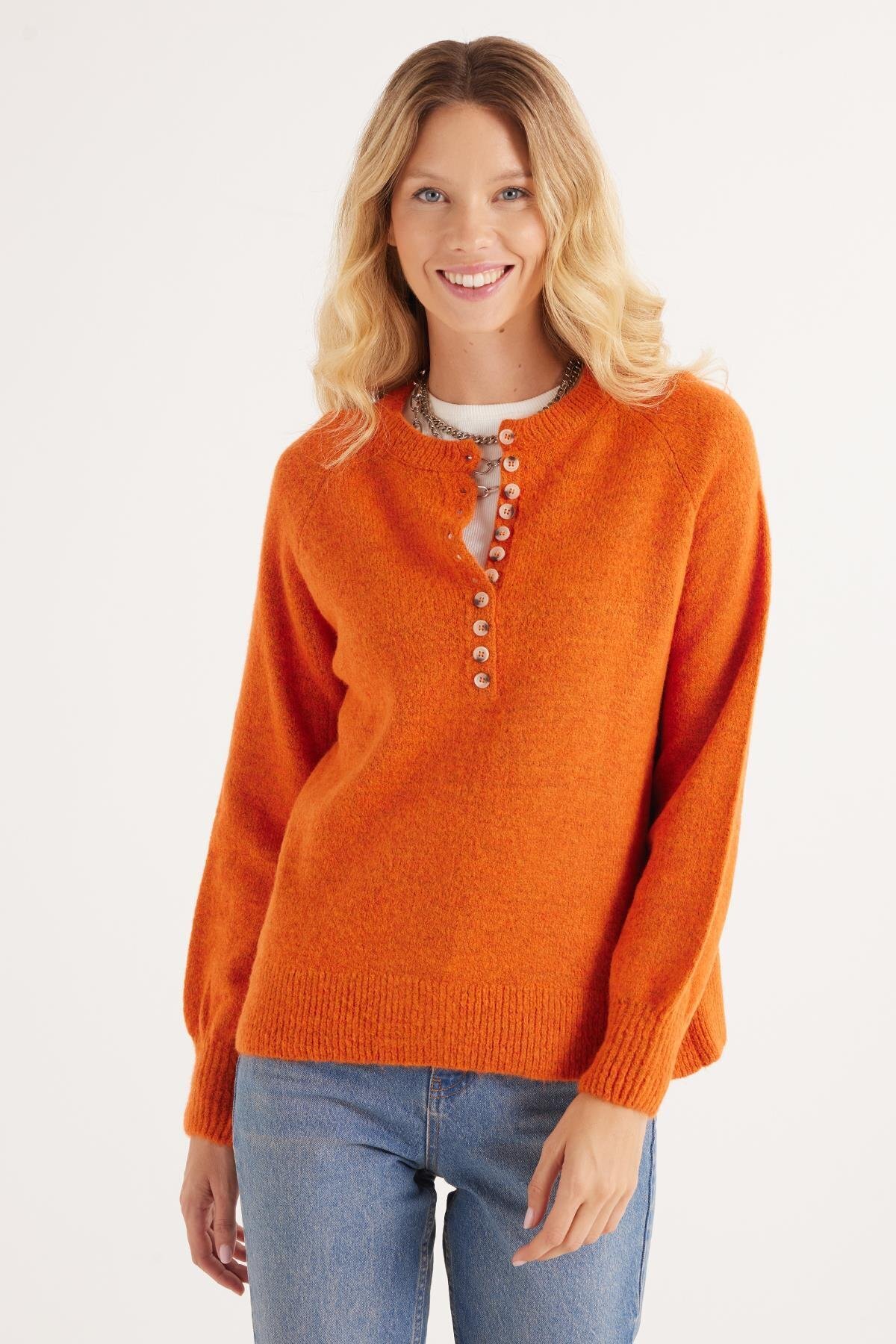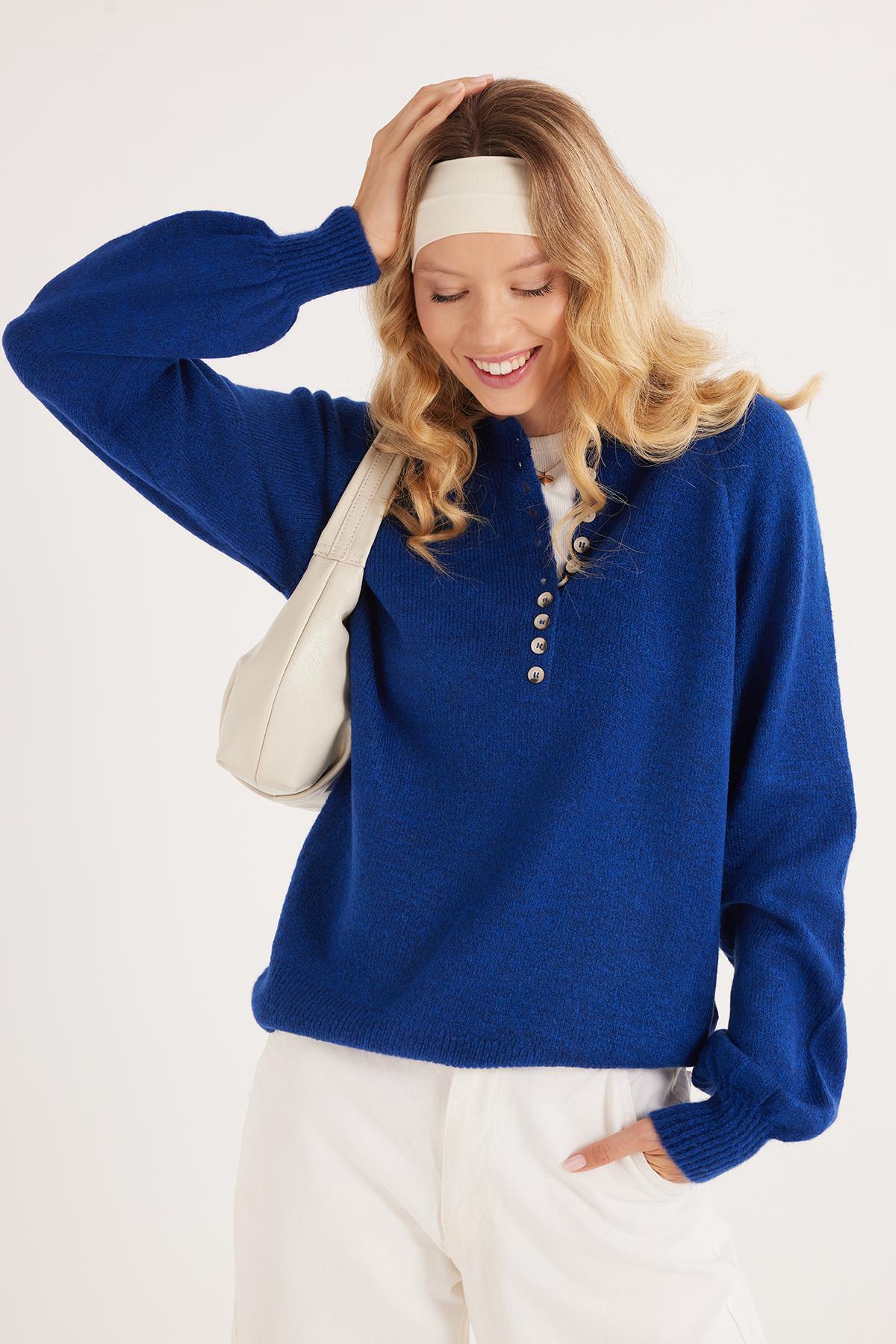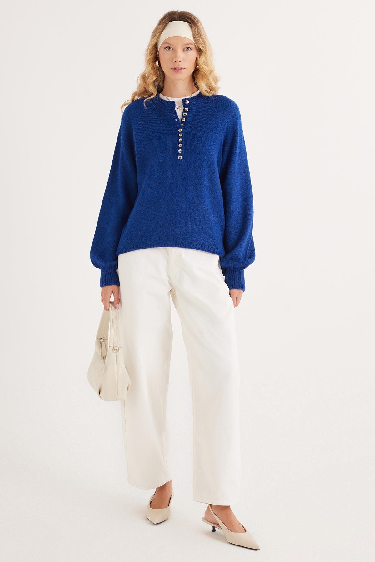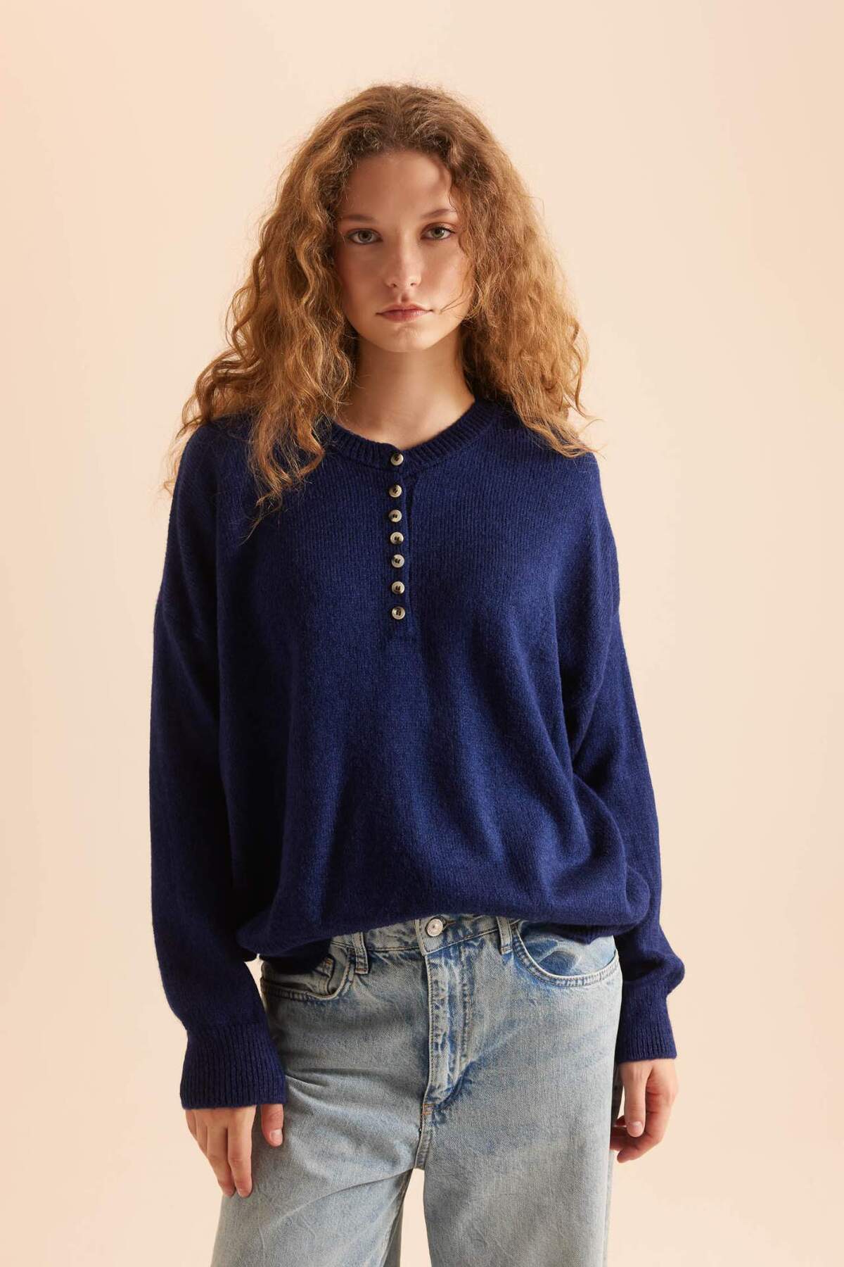 Kadın Oversize Geniş Kesim Düğmeli Yaka Lacivert Kazak Kadın Oversize Geniş Kesim Düğmeli Yaka Lacivert Kazak BYKZ2505 Standart