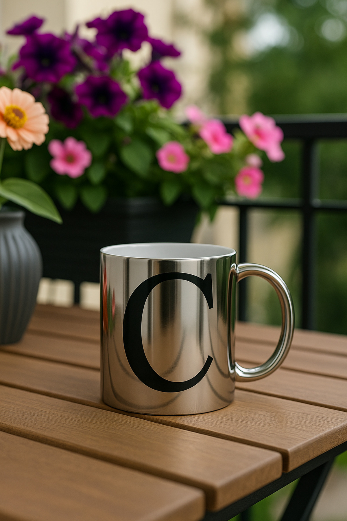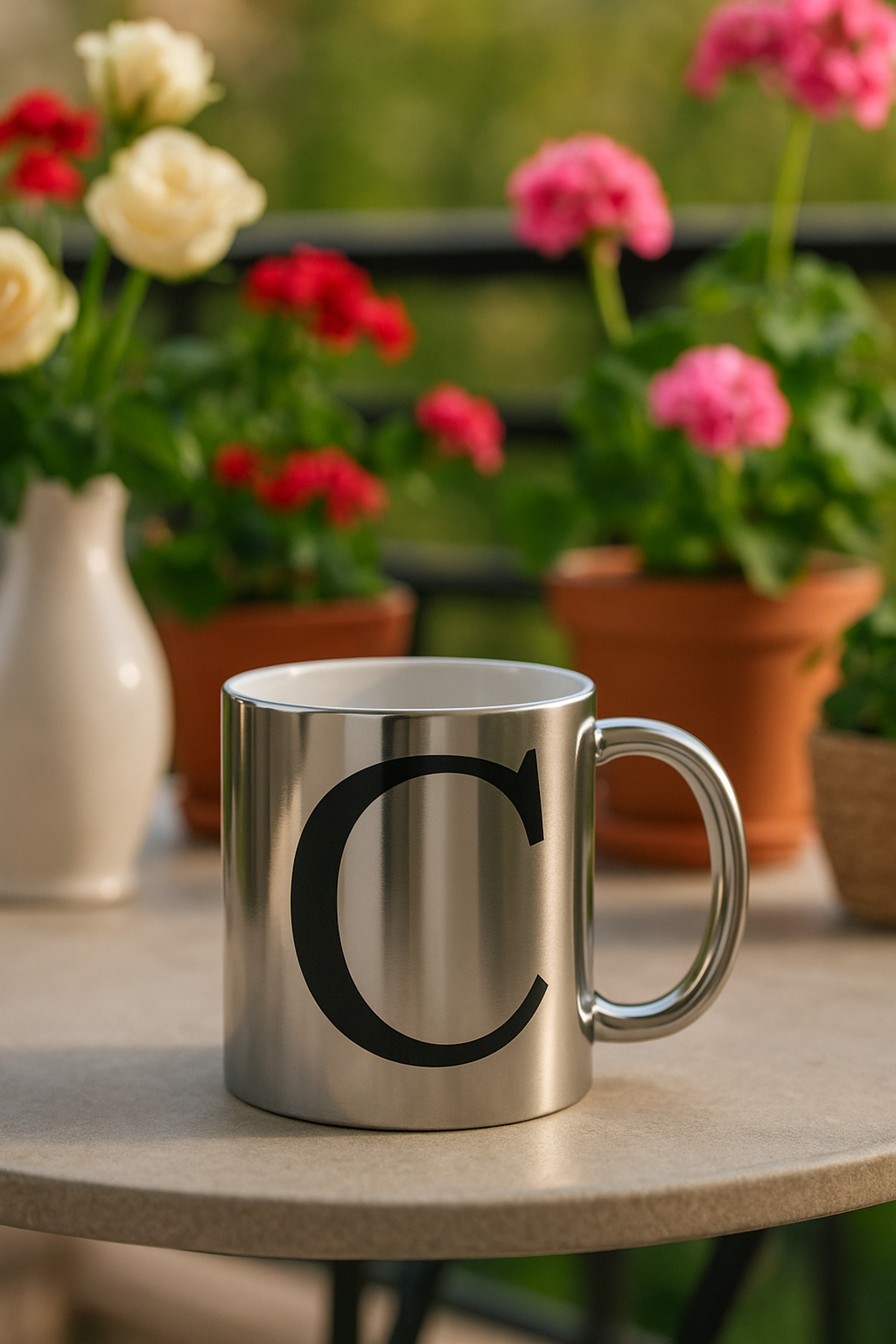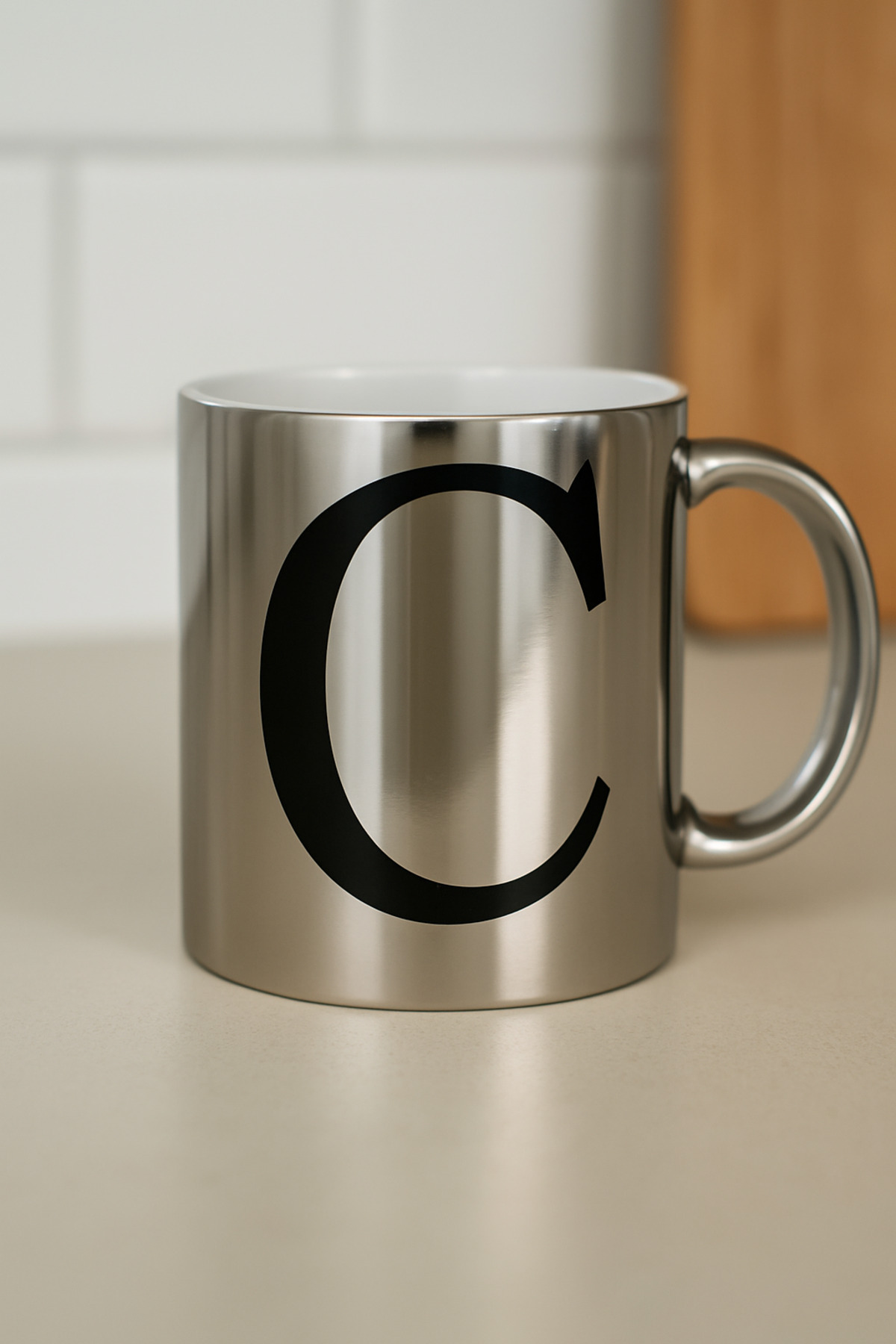 C Harfli Yazı Baskılı Gümüş Renk Büyük Boy Kupa Bardak C Harfli Yazı Baskılı Gümüş Renk Büyük Boy Kupa Bardak 37108COKA تک سایز