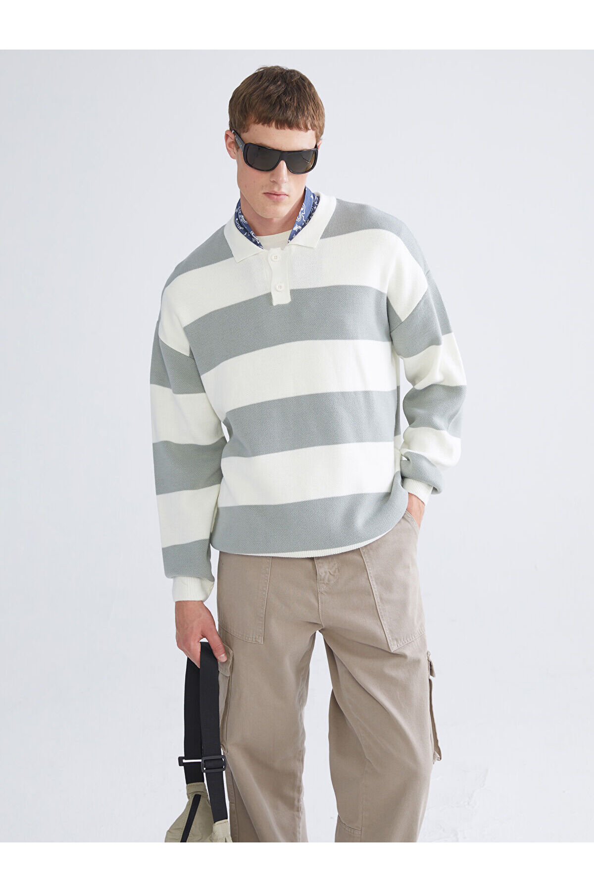 Çizgili uzun kollu polo Çizgili uzun kollu polo 07550519 XL