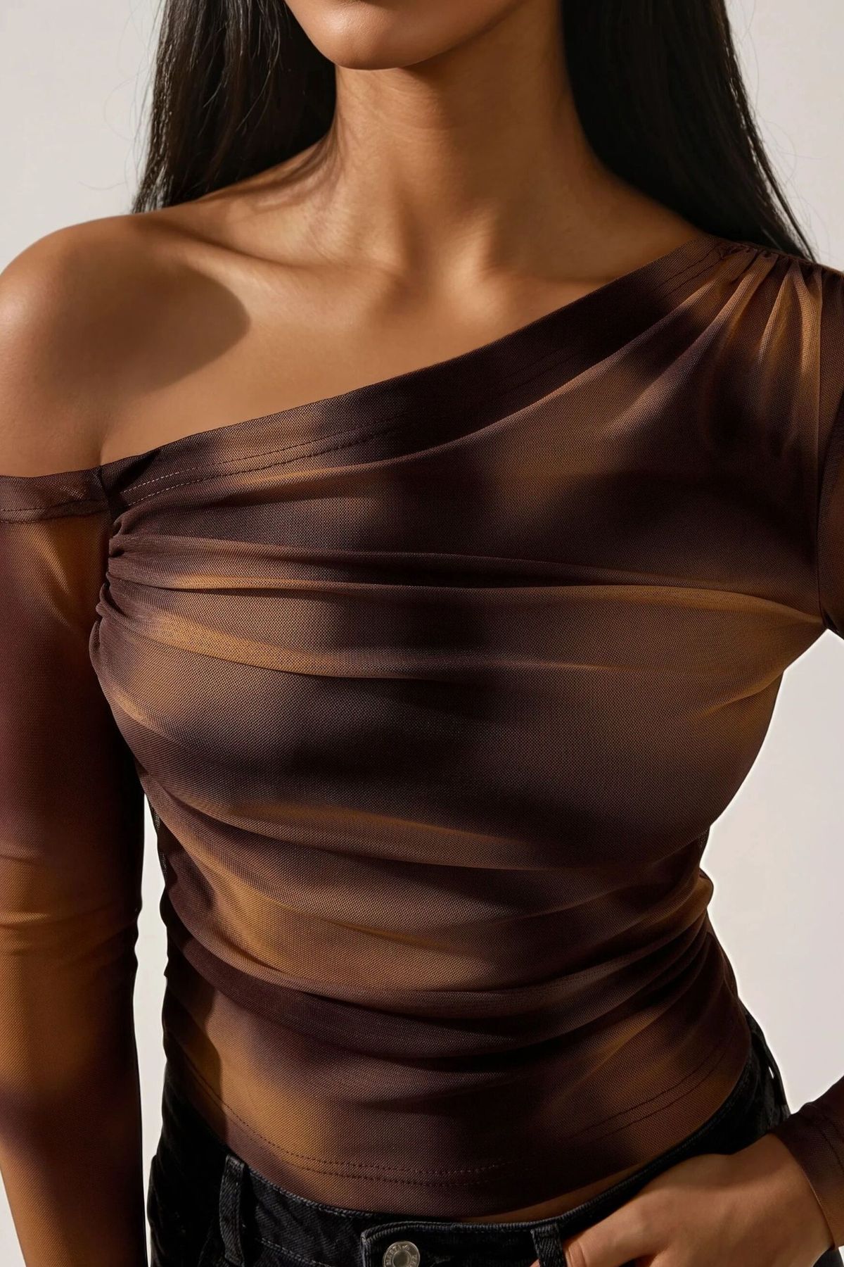 Asimetrik Yaka Astarlı Tül Bluz Asimetrik Yaka Astarlı Tül Bluz M2BSB46I 2XL