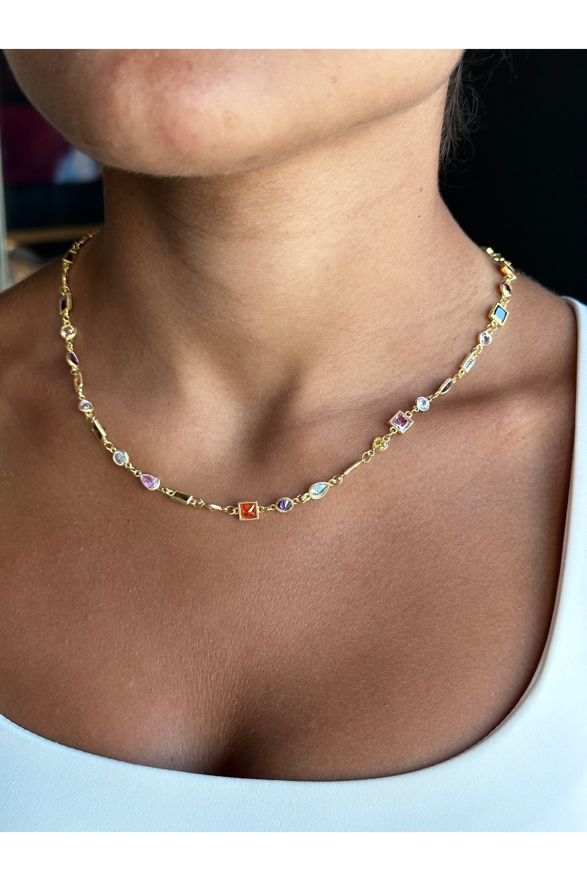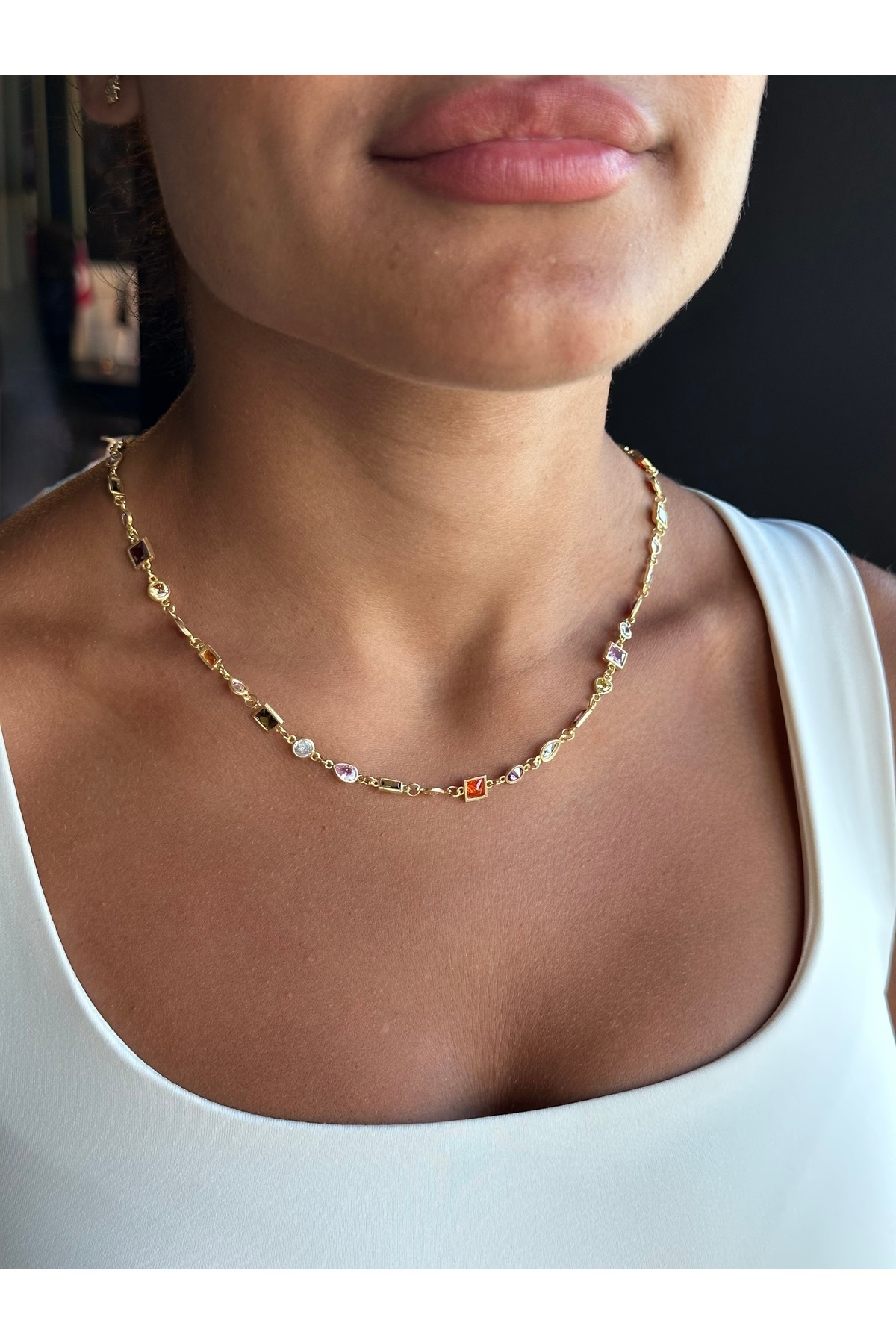 925 AYAR GÜMÜŞ RENKLİ TAŞLI KOLYE 925 AYAR GÜMÜŞ RENKLİ TAŞLI KOLYE ARG-5023 40 cm