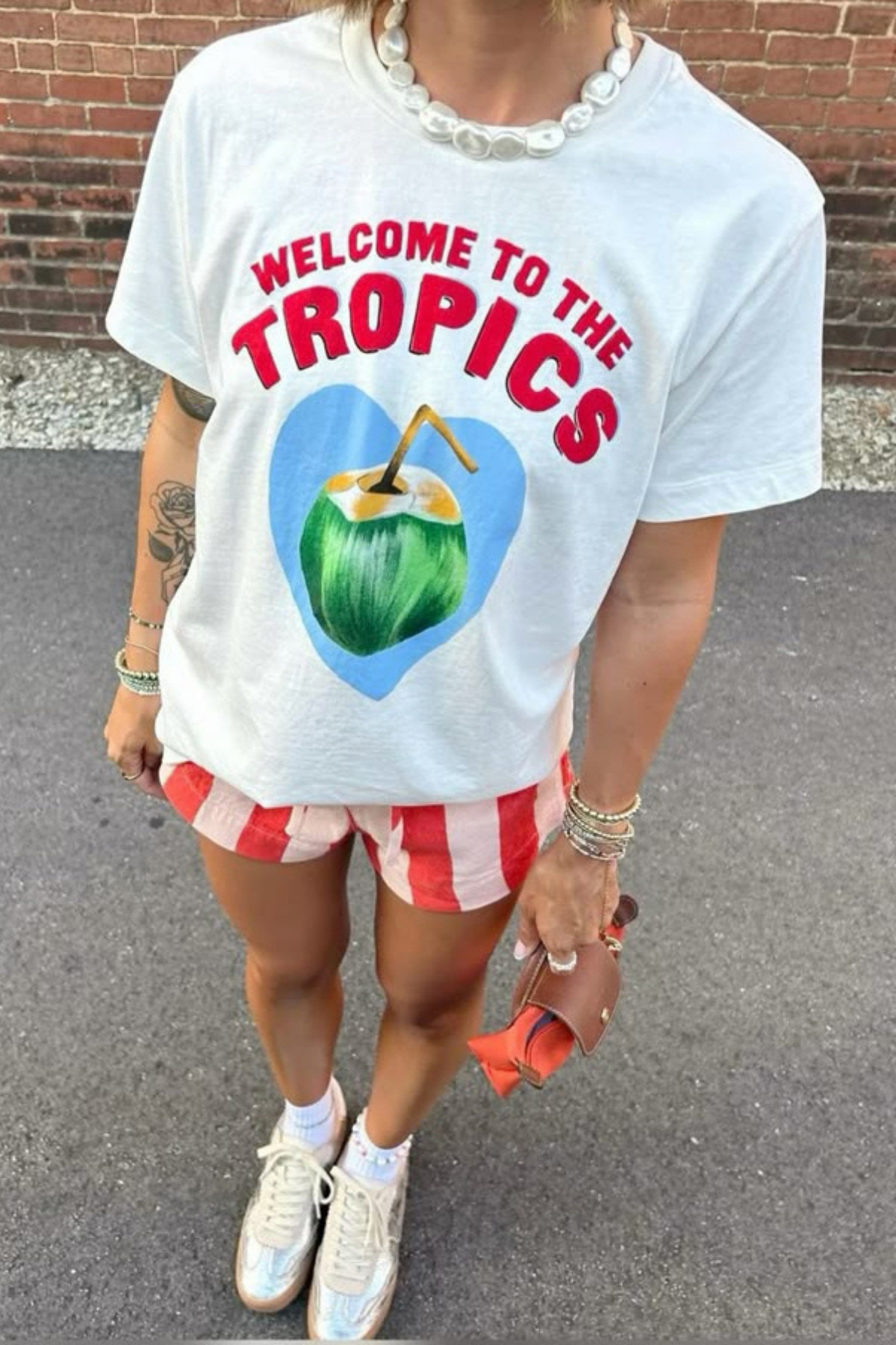 Kadın Beyaz Tişört – Tropikal Hindistan Cevizi Baskılı Welcome to The Tropics Yazlık Oversize Kadın Beyaz Tişört – Tropikal Hindistan Cevizi Baskılı Welcome to The Tropics Yazlık Oversize TC-WTT-001 2XL