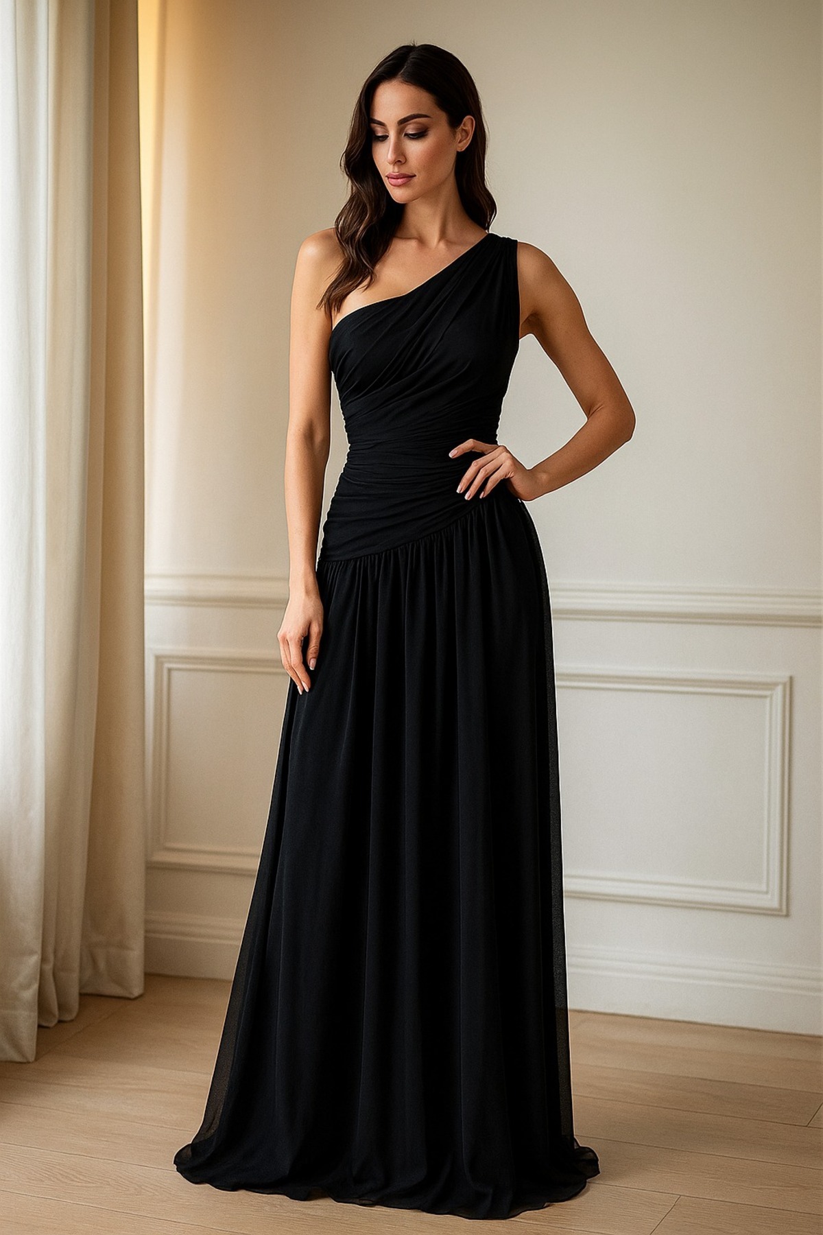 Tek Omuz Desenli Tül Abiye Elbise Tek Omuz Desenli Tül Abiye Elbise CYLSS25-040 46