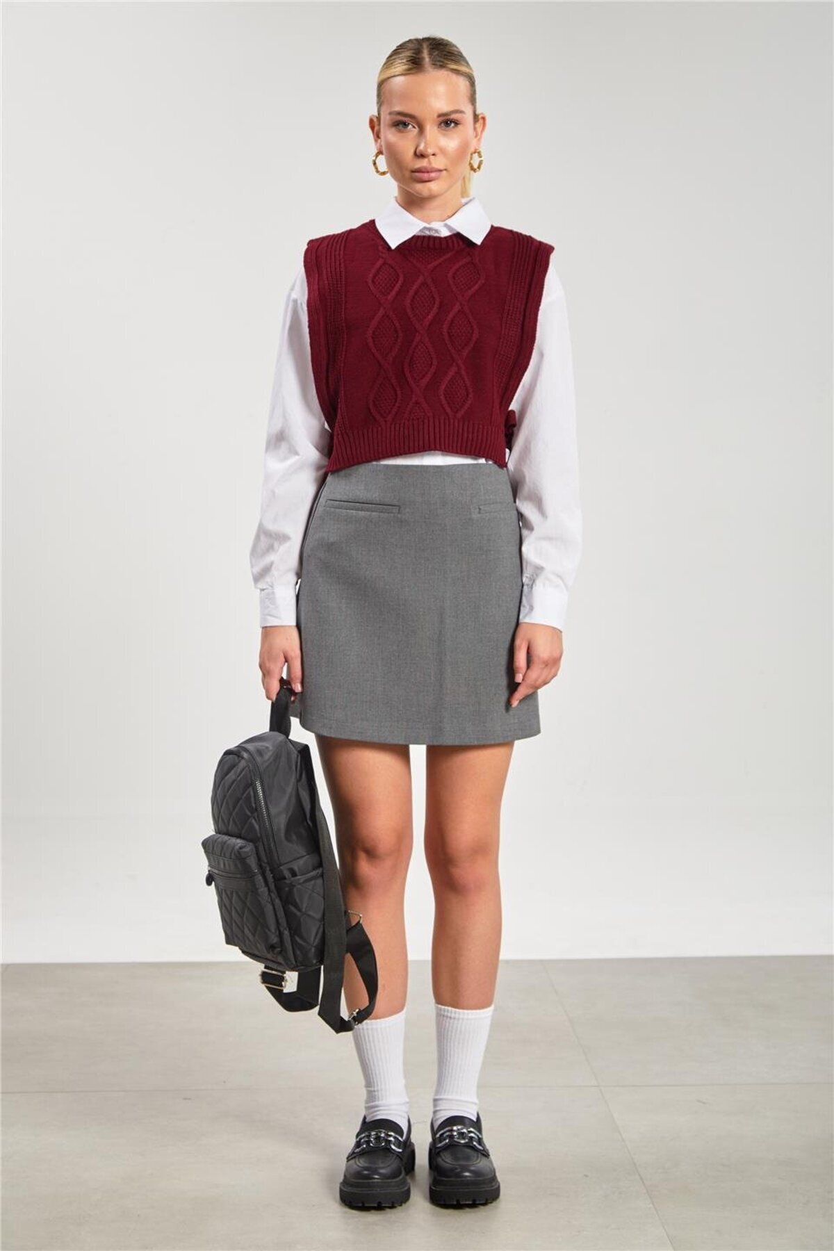 Kadın Fleto Cep Mini Etek - Okul Gri Kadın Fleto Cep Mini Etek - Okul Gri 992-25M06002 XL