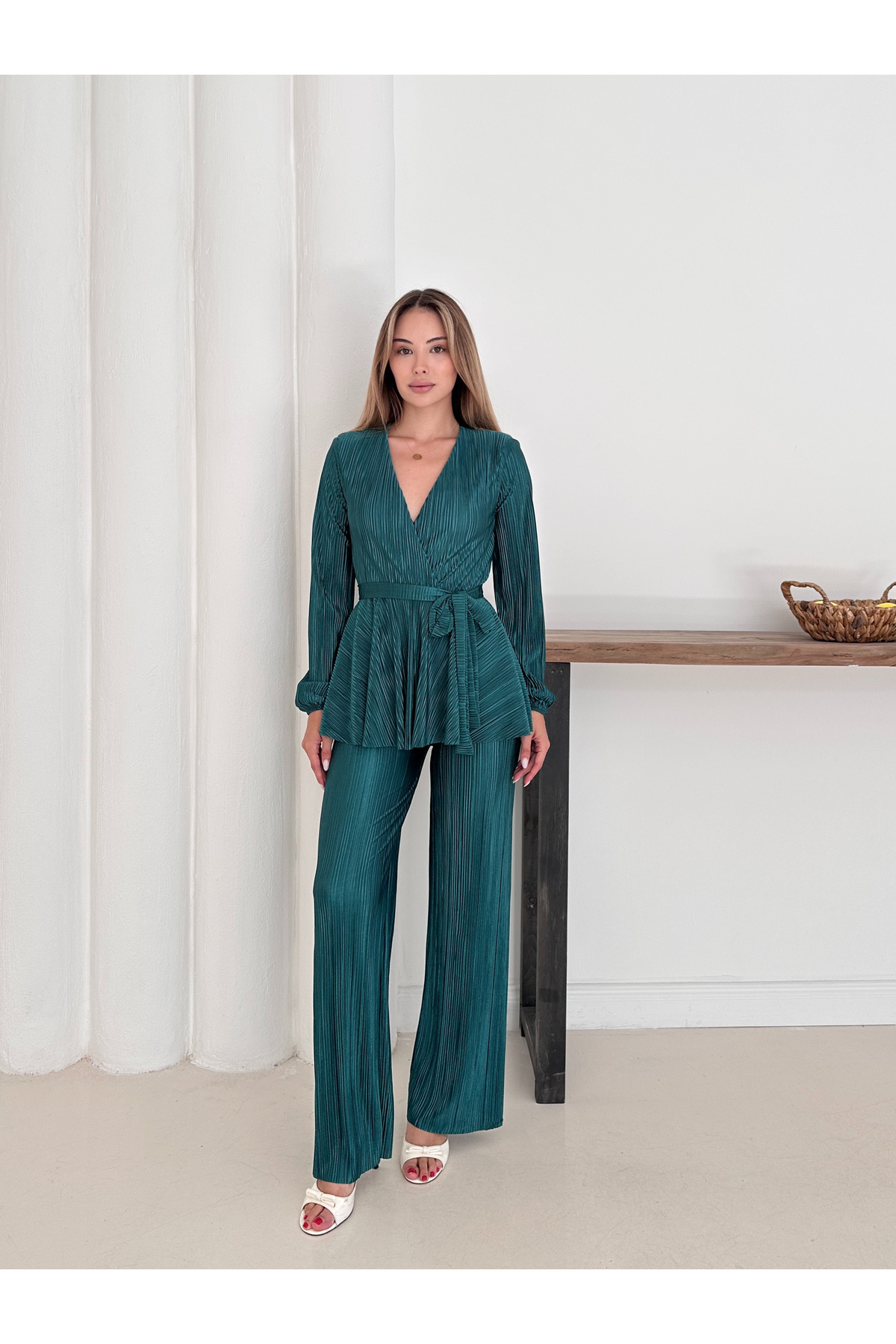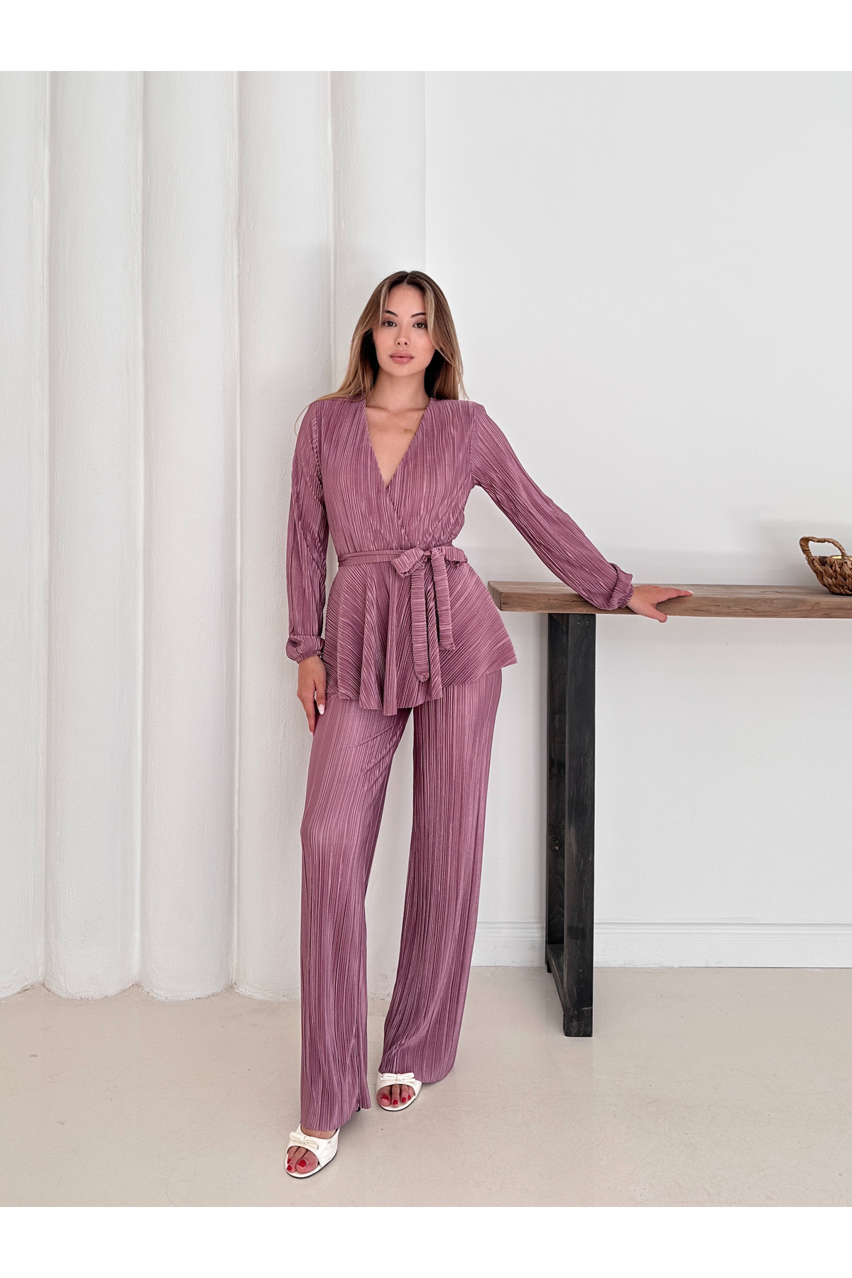 Pliseli Saten Vatkalı Şık Kruvaze Takım Pliseli Saten Vatkalı Şık Kruvaze Takım Verakruvaze 2XL
