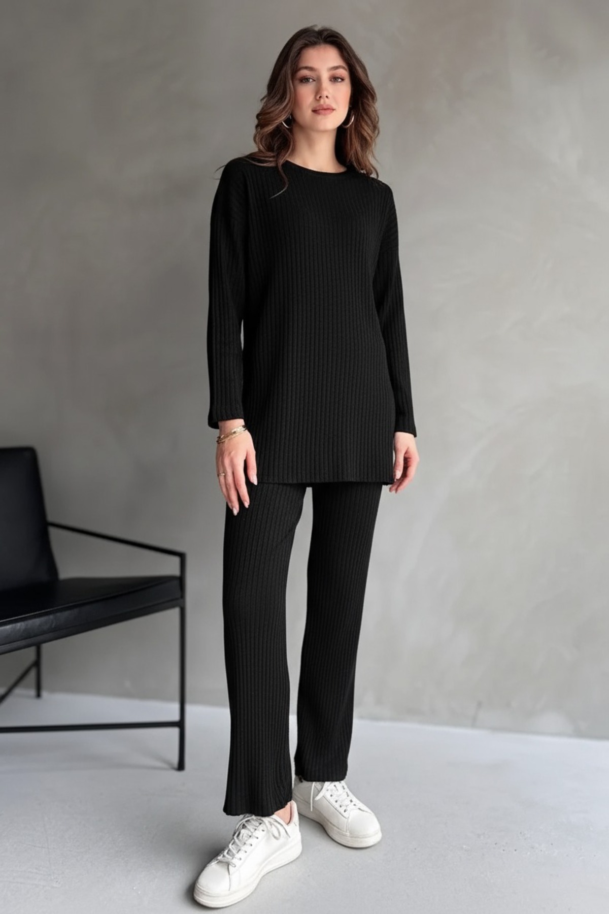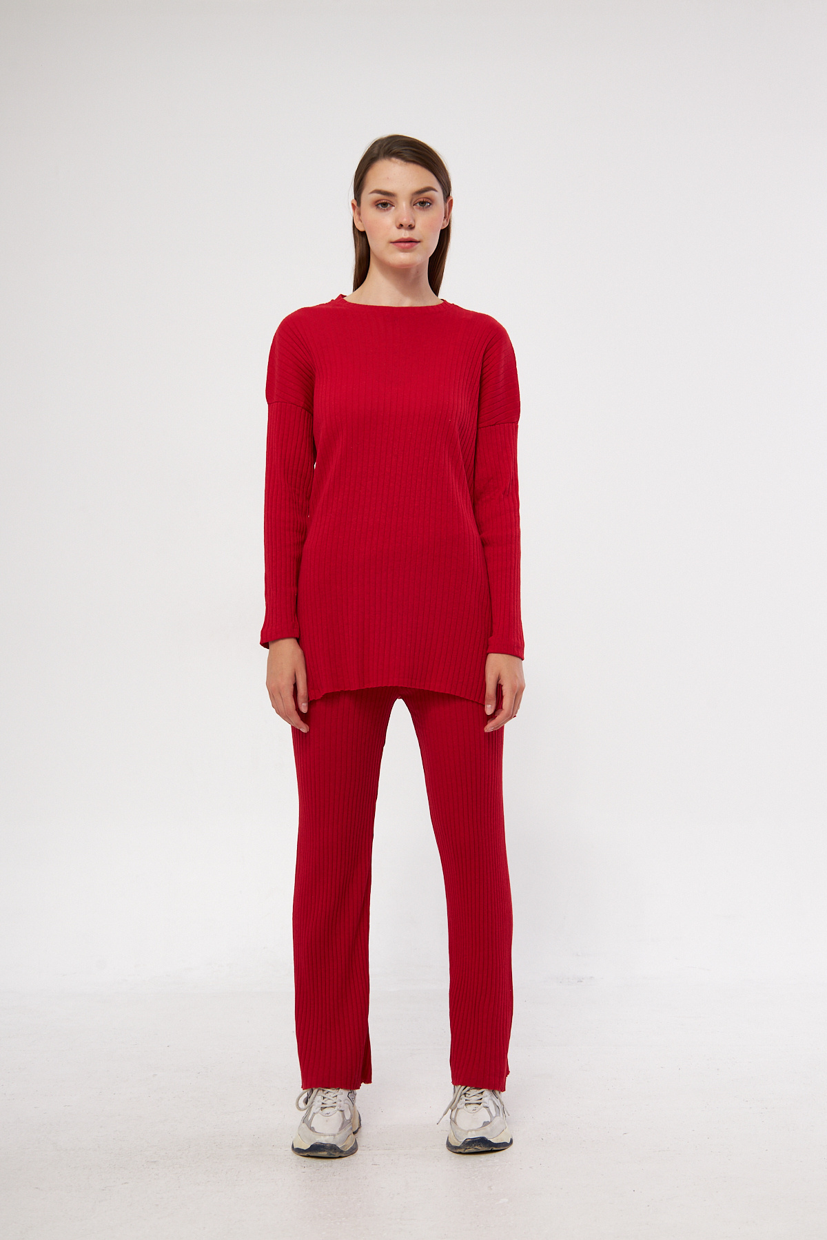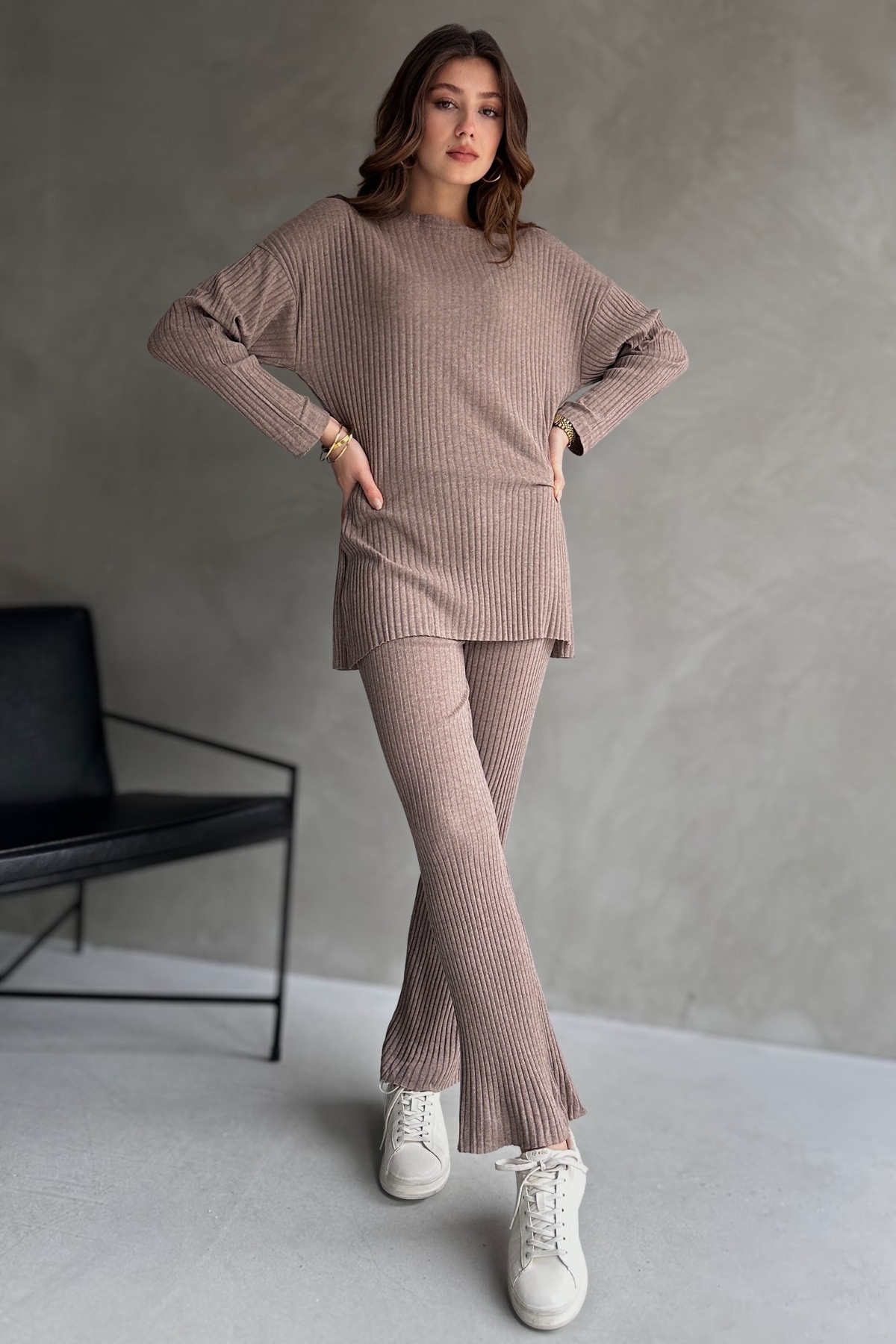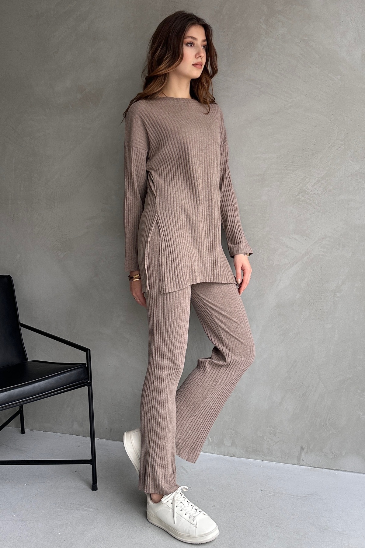 Vizon Pamuklu Fitilli Kadın Bluz Pantolon İkili Takım Vizon Pamuklu Fitilli Kadın Bluz Pantolon İkili Takım EBTKM001 XL