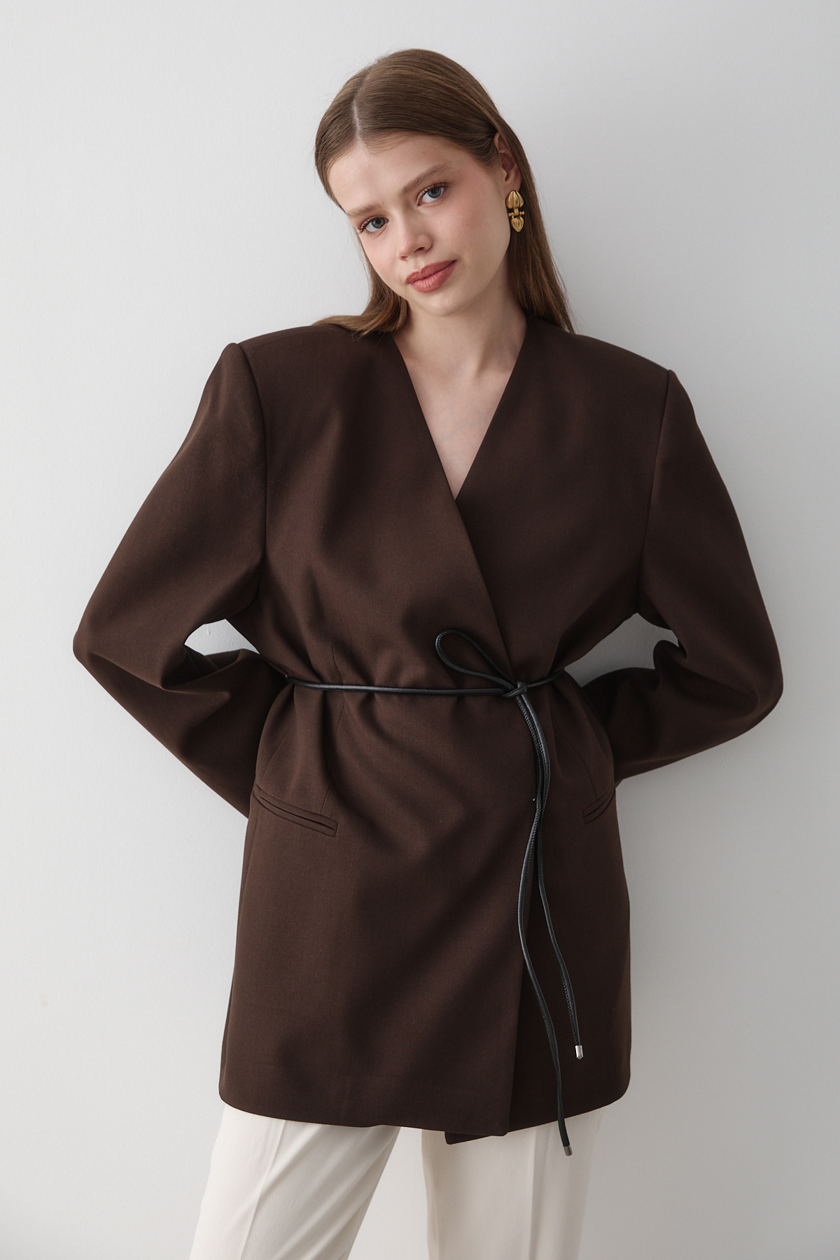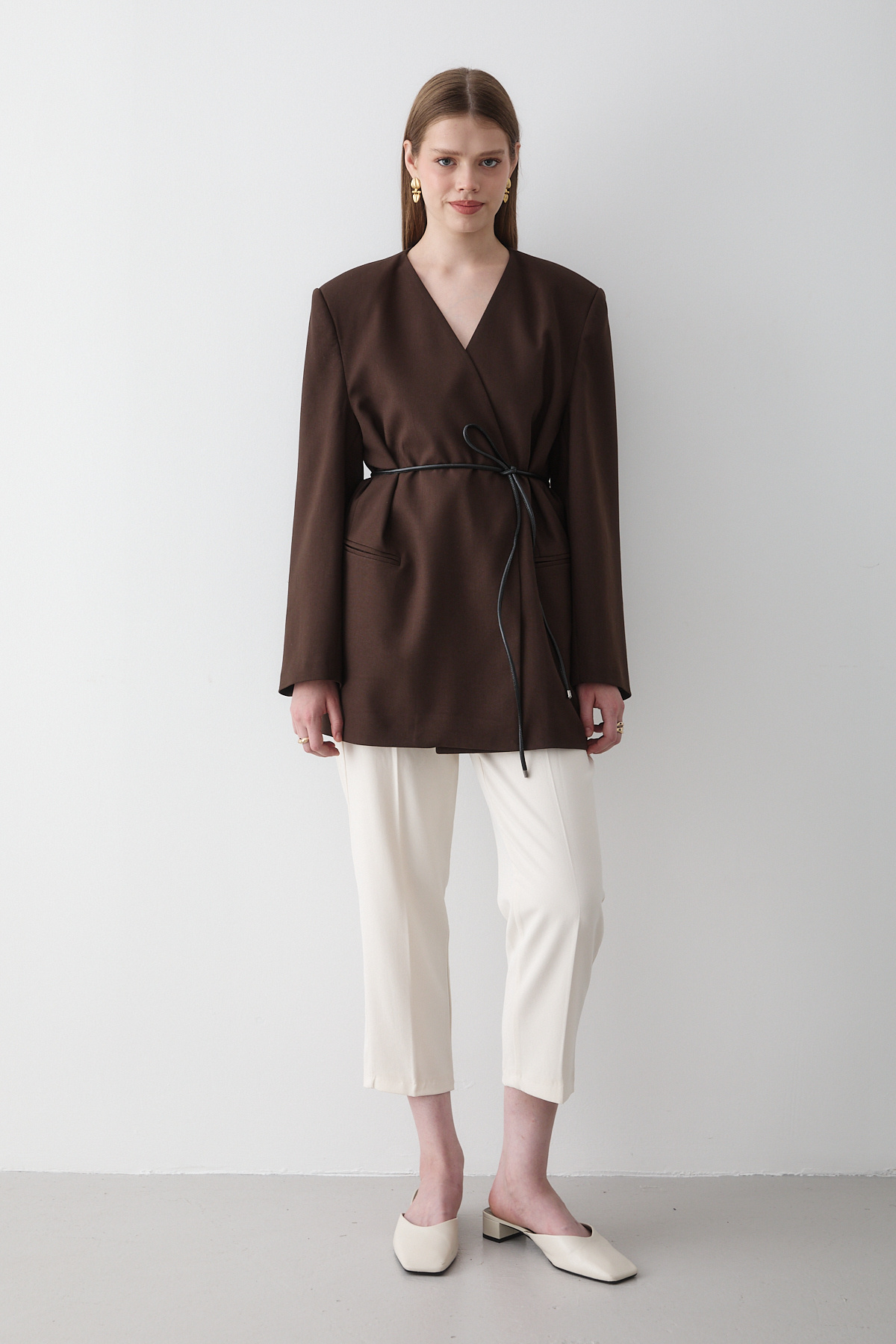 Kadın Kahverengi Kruvaze Kemer Detaylı Oversize Blazer Ceket Kadın Kahverengi Kruvaze Kemer Detaylı Oversize Blazer Ceket 7454 Standart