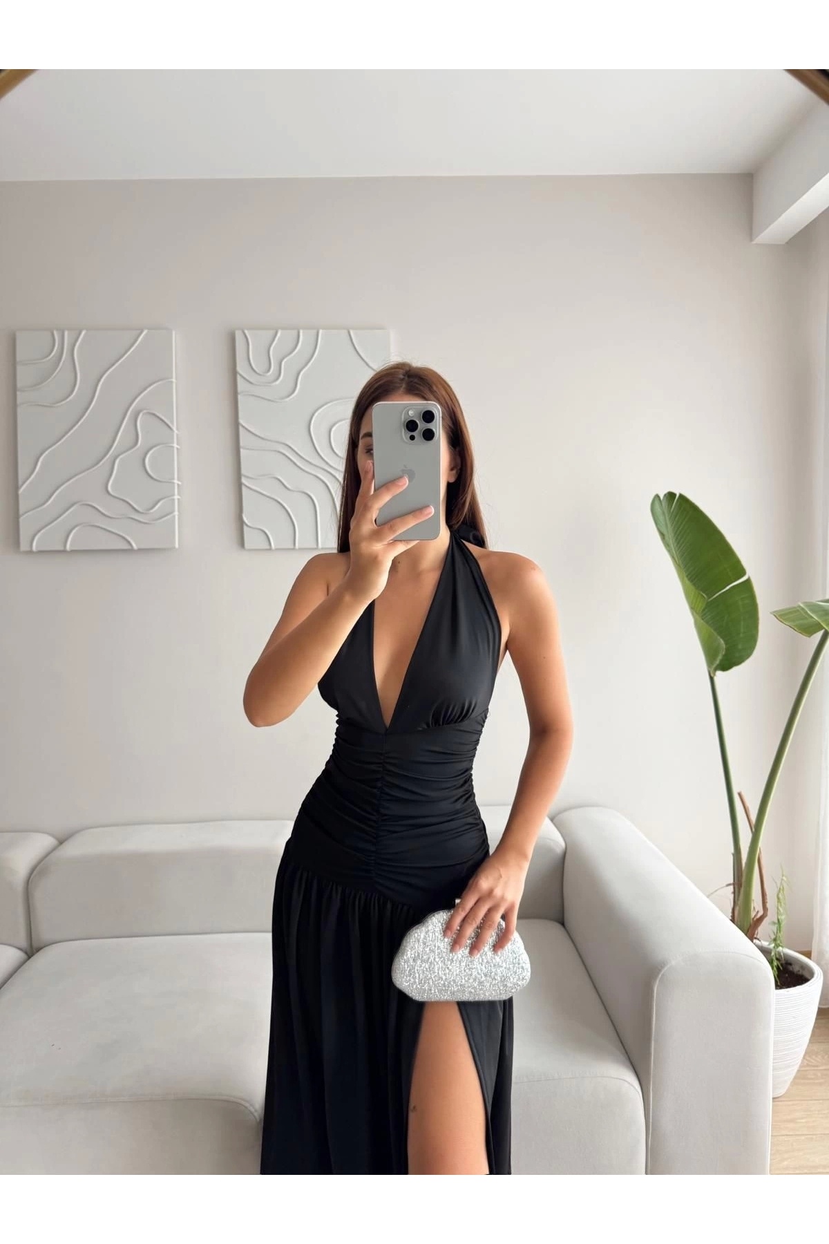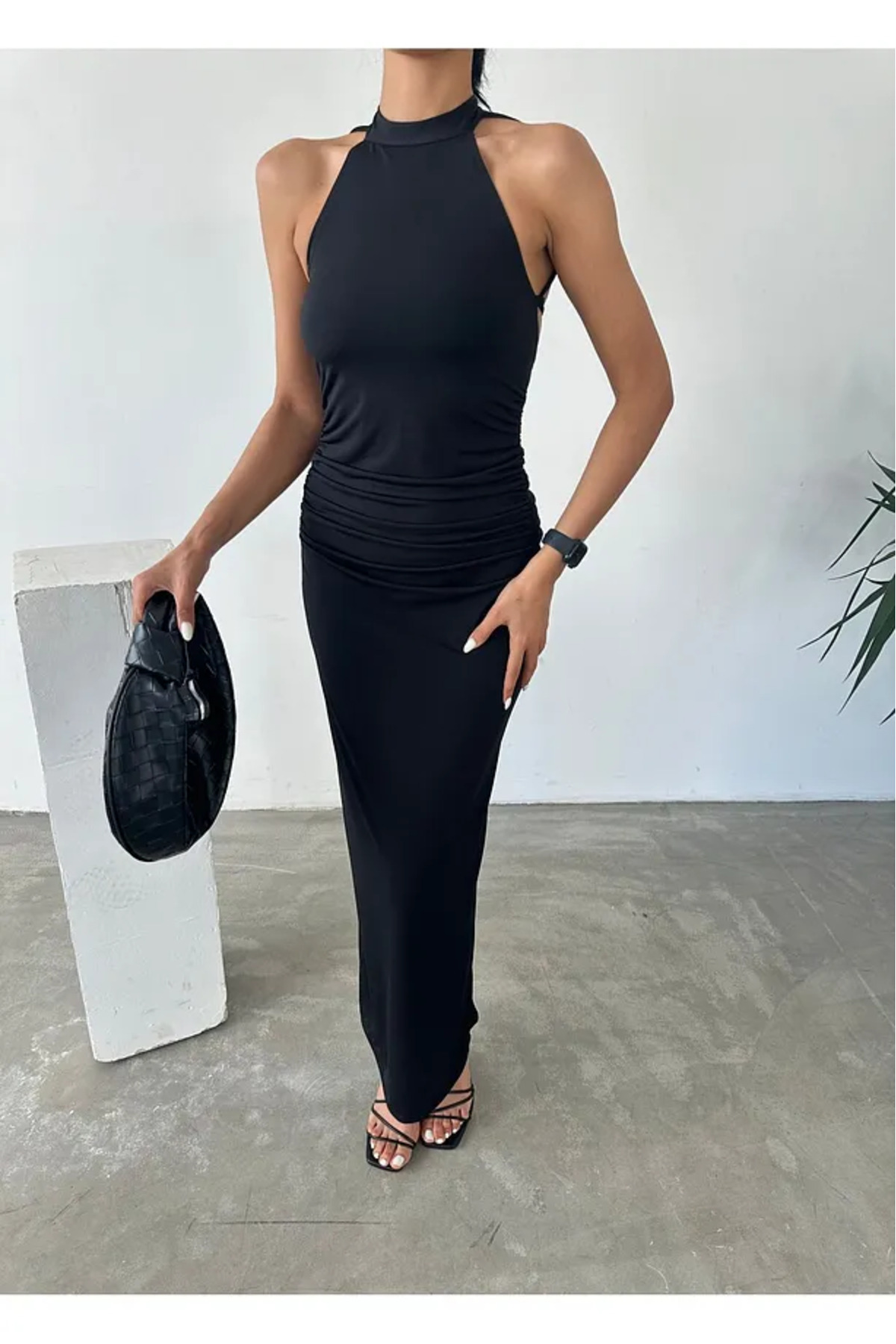 Kadın Siyah Sırt Dekolteli Uzun Elbise Kadın Siyah Sırt Dekolteli Uzun Elbise ow39 L