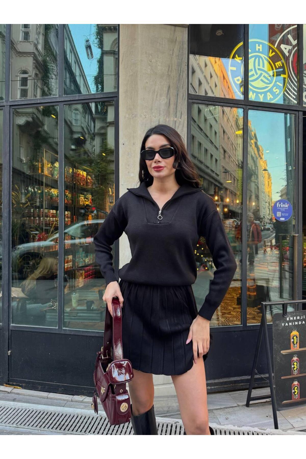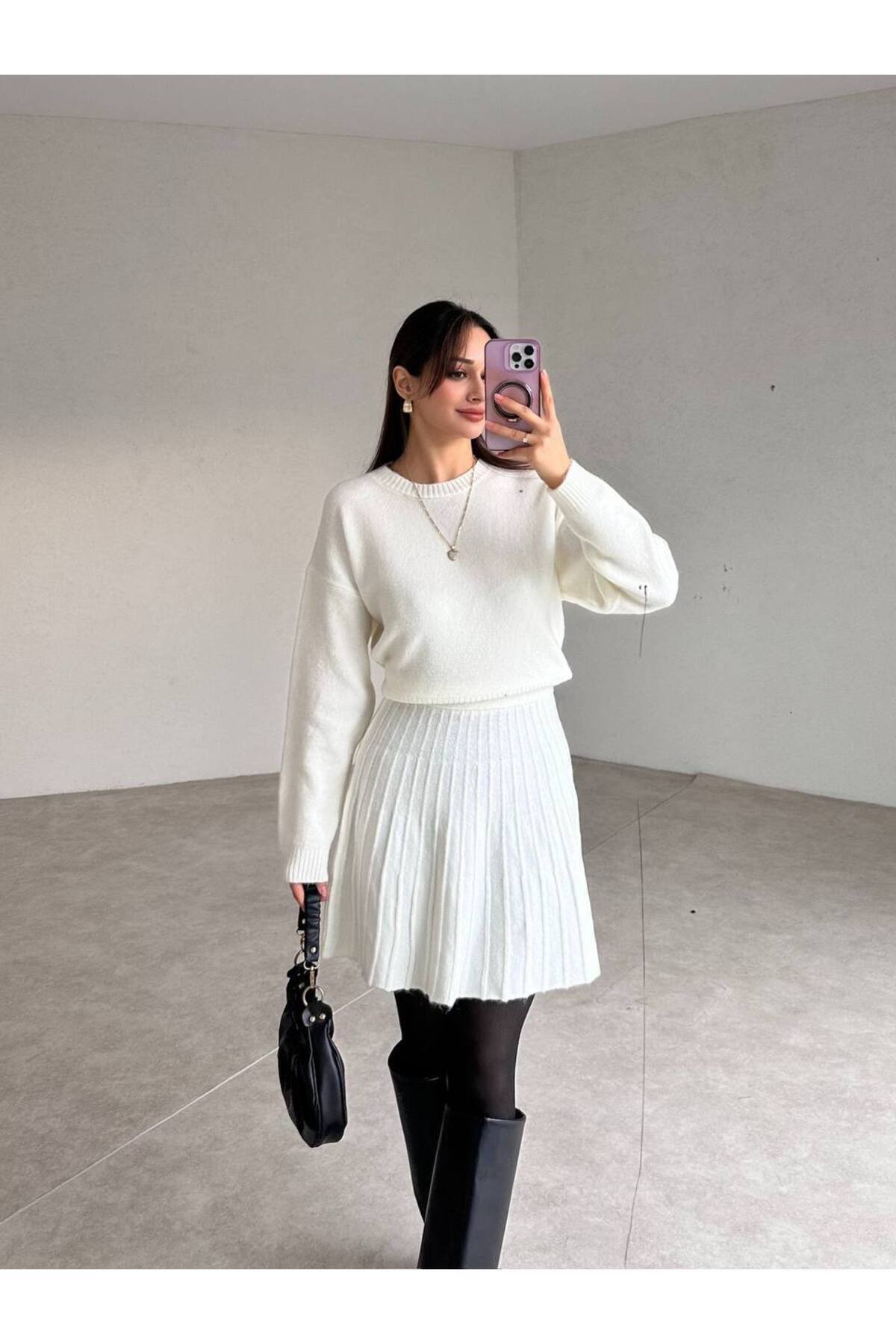 Kadın Çizgili Pileli Mini Etekli Takım Kadın Çizgili Pileli Mini Etekli Takım ware120 Standart
