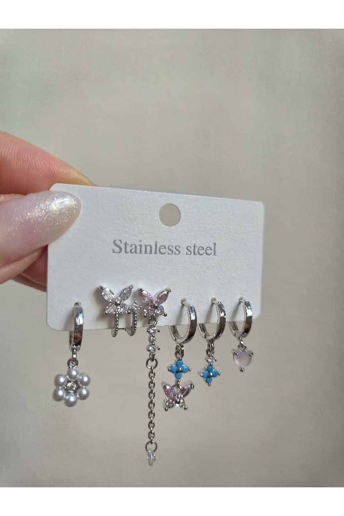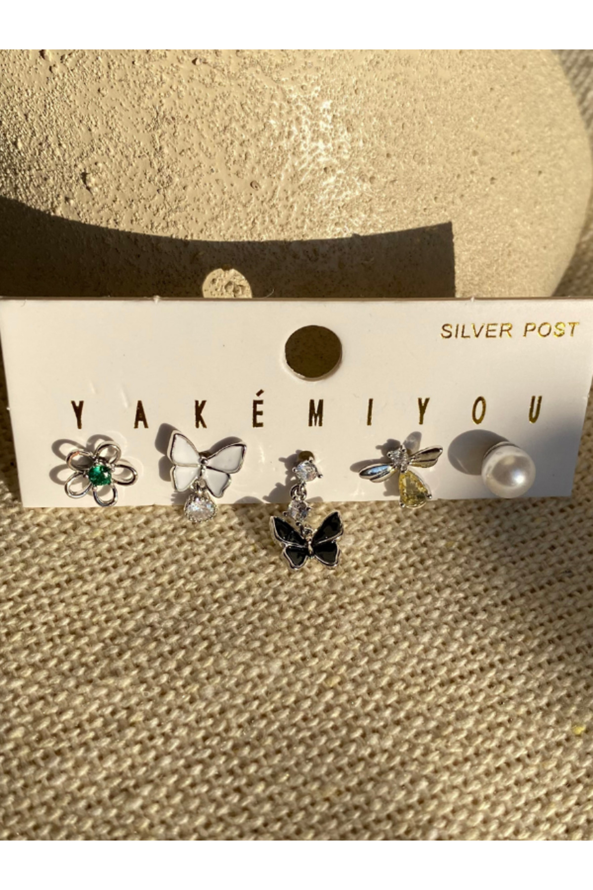 YAKEMIYOU KELEBEK ÇİÇEK GÜMÜŞ KAPLAMA GARANTİLİ KÜPE SETİ ANTİALERJİK KARARMAZ YAKEMIYOU KELEBEK ÇİÇEK GÜMÜŞ KAPLAMA GARANTİLİ KÜPE SETİ ANTİALERJİK KARARMAZ BRET527 تک سایز