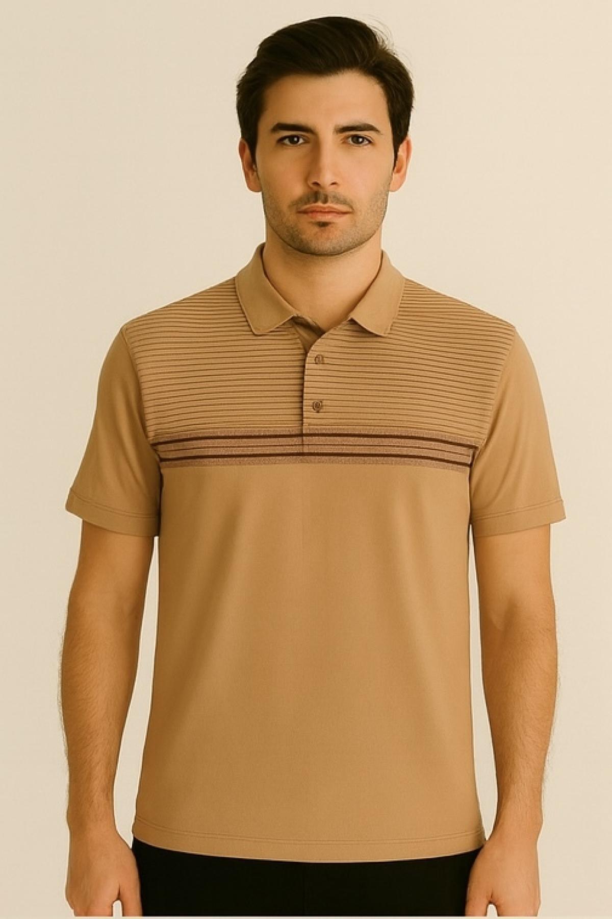 Erkek Kısa Kol Çizgili Yazlık Taba Polo Yaka Tişört Erkek Kısa Kol Çizgili Yazlık Taba Polo Yaka Tişört 611MCCL 2XL