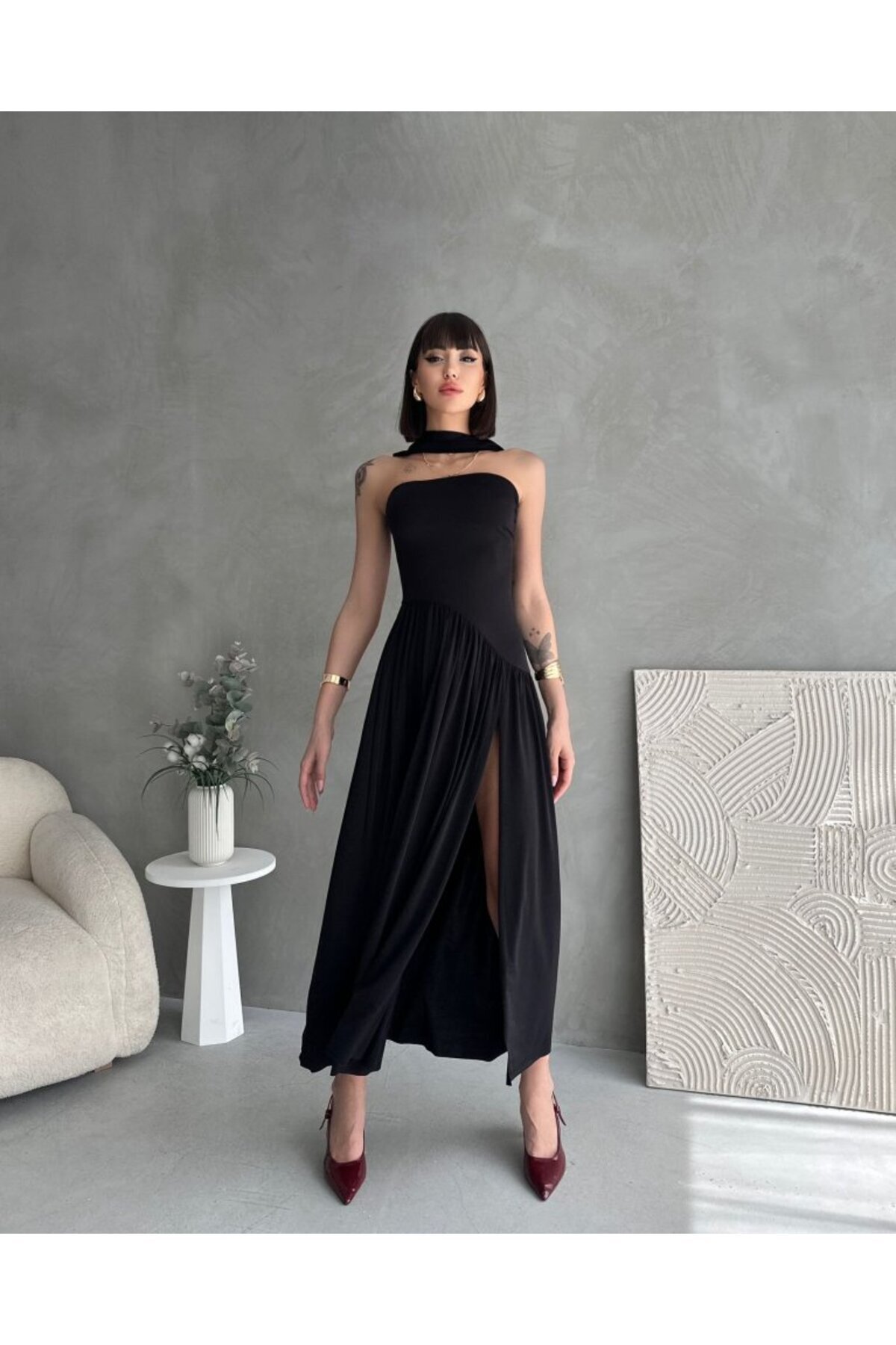 Saten Bej Straplez Asimetrik Elbise Saten Bej Straplez Asimetrik Elbise ily8921498 L