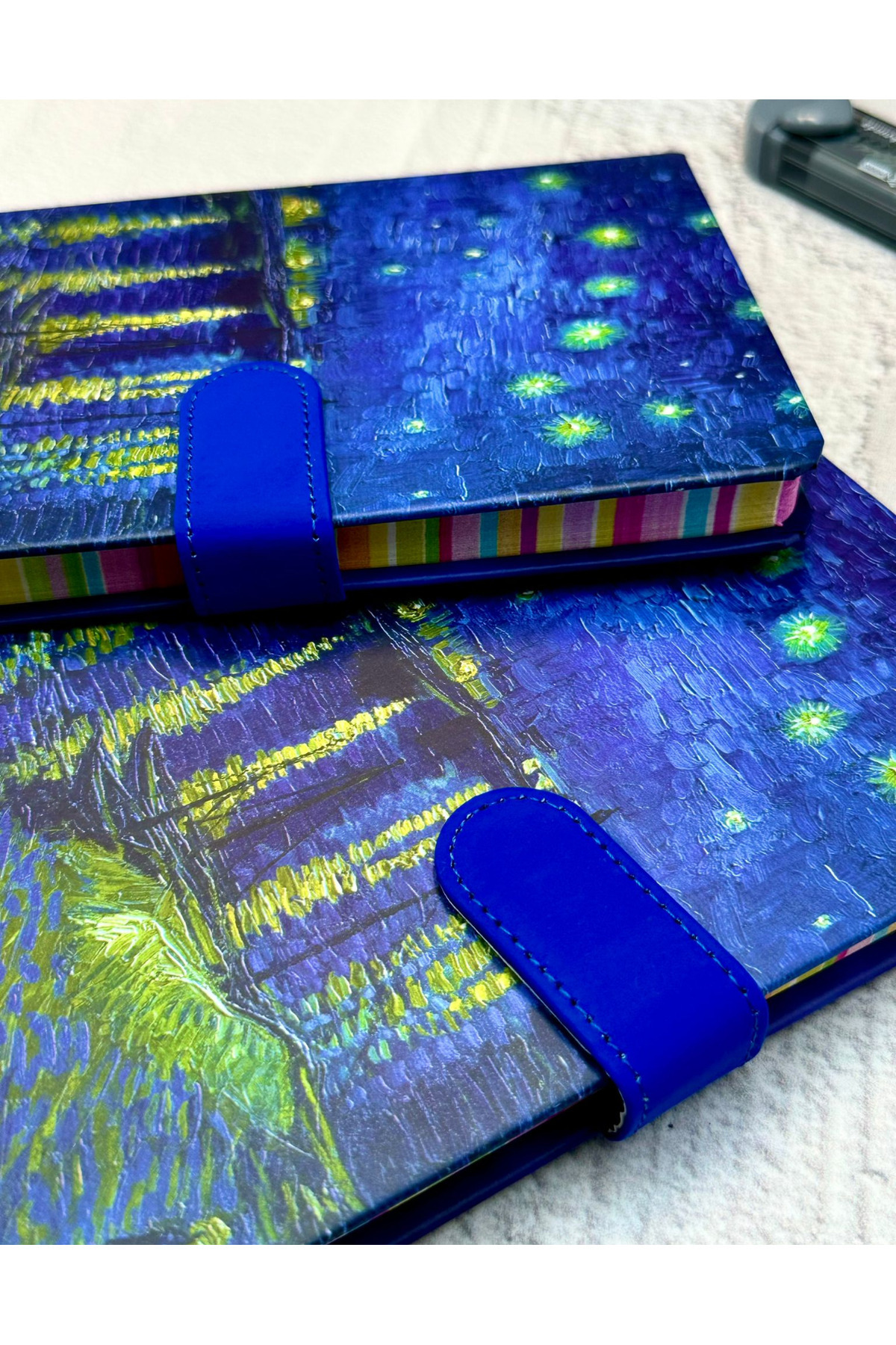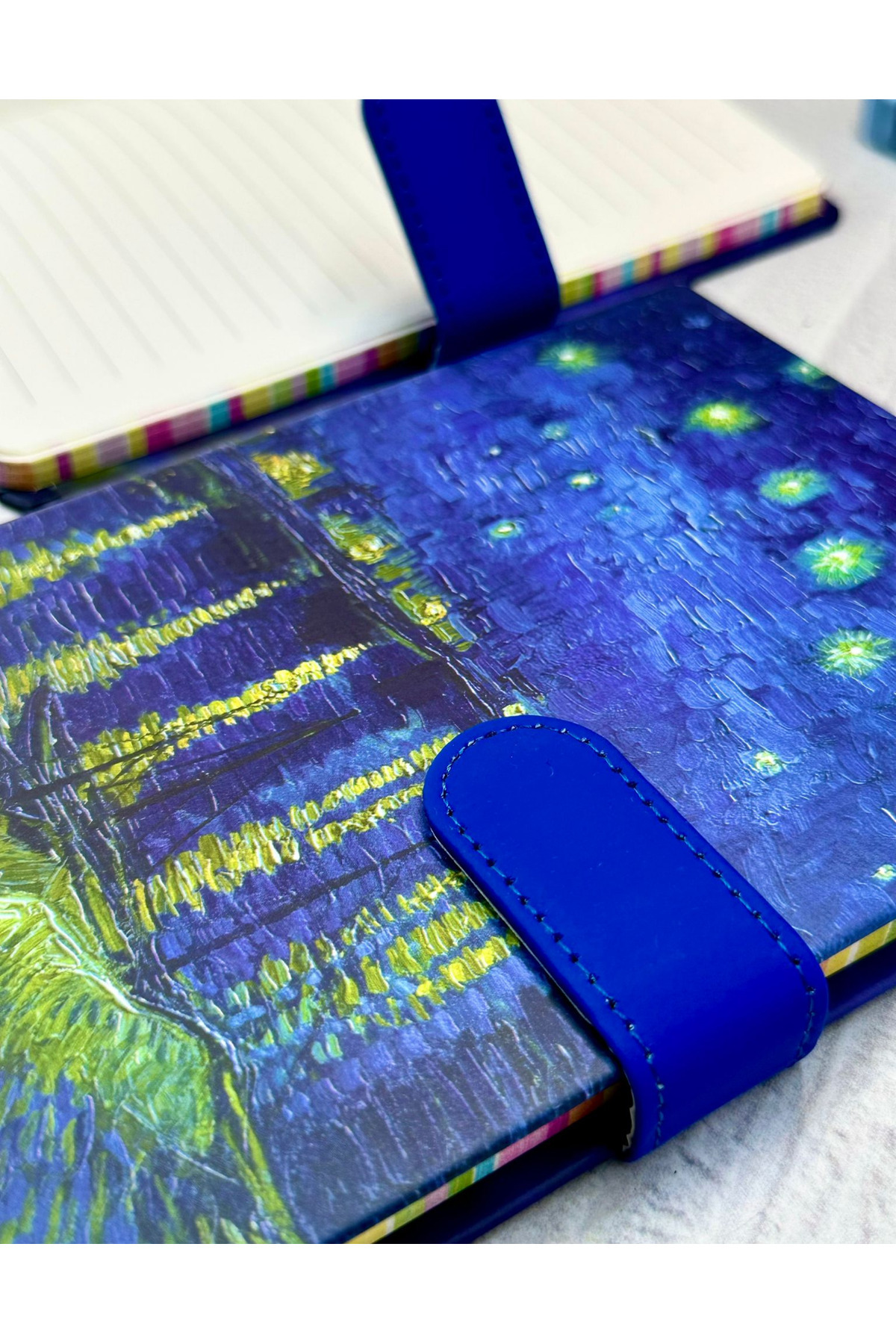 Van Gogh Yıldızlı Gece Desenli Çizgili Sert Kapak Mıknatıslı Defter Van Gogh Yıldızlı Gece Desenli Çizgili Sert Kapak Mıknatıslı Defter zeco00252 تک سایز