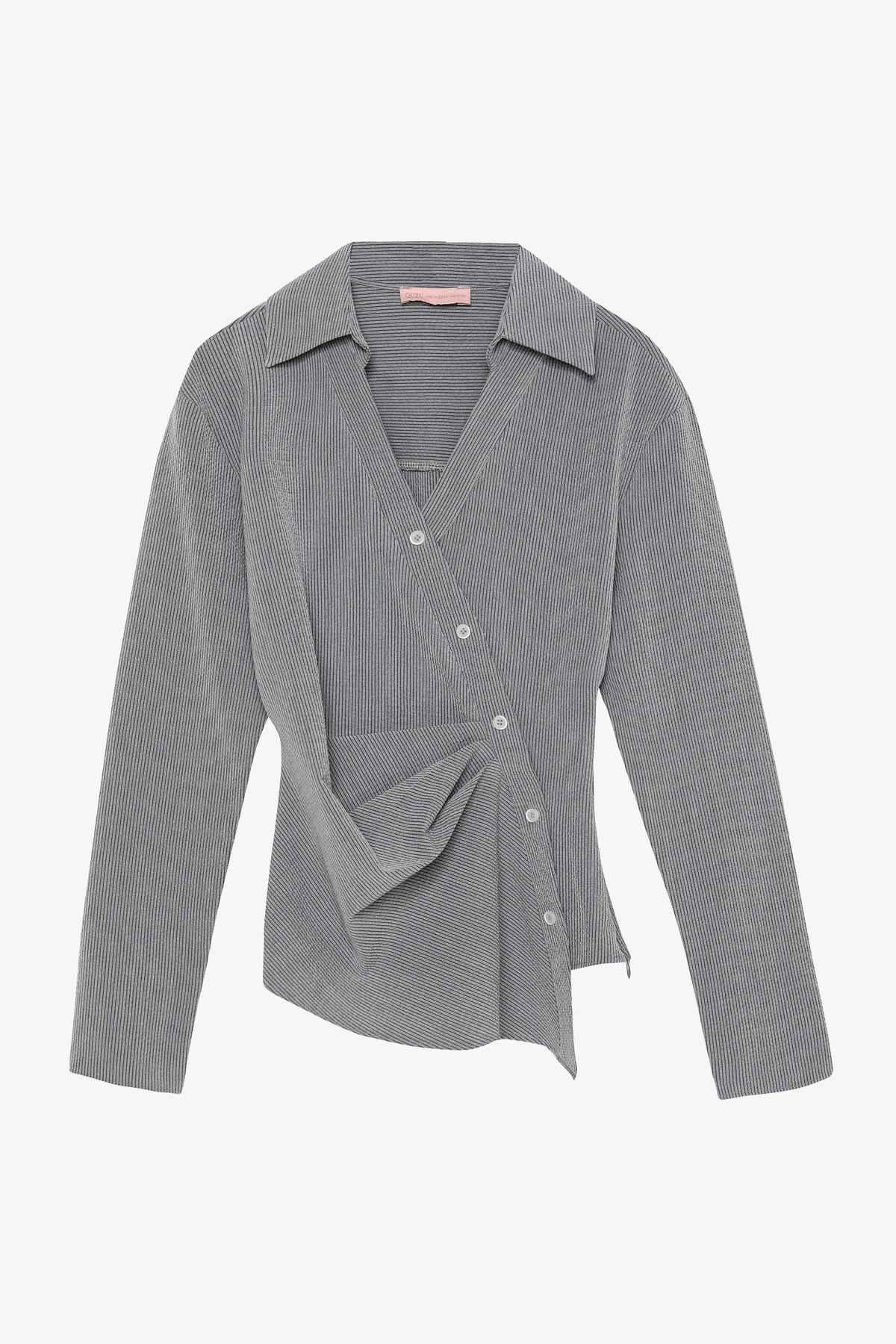 Asimetrik Düğmeli Drapeli Gömlek Gri Asimetrik Düğmeli Drapeli Gömlek Gri 26KGML01011 L
