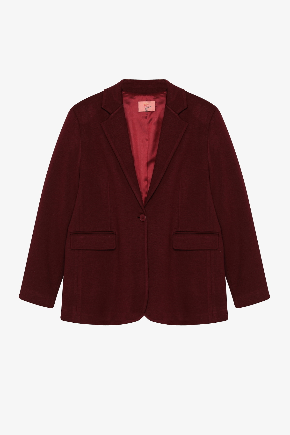 Tek Düğmeli Yumuşak Dokulu Oversize Blazer Ceket Vişne Tek Düğmeli Yumuşak Dokulu Oversize Blazer Ceket Vişne 26KCKT00822 L