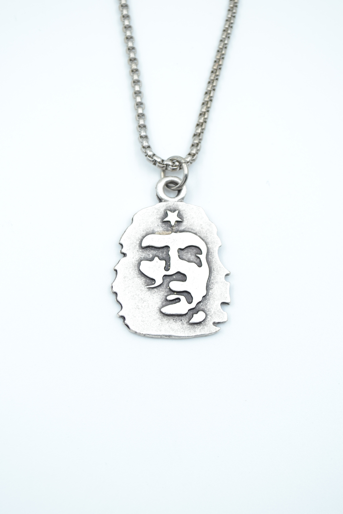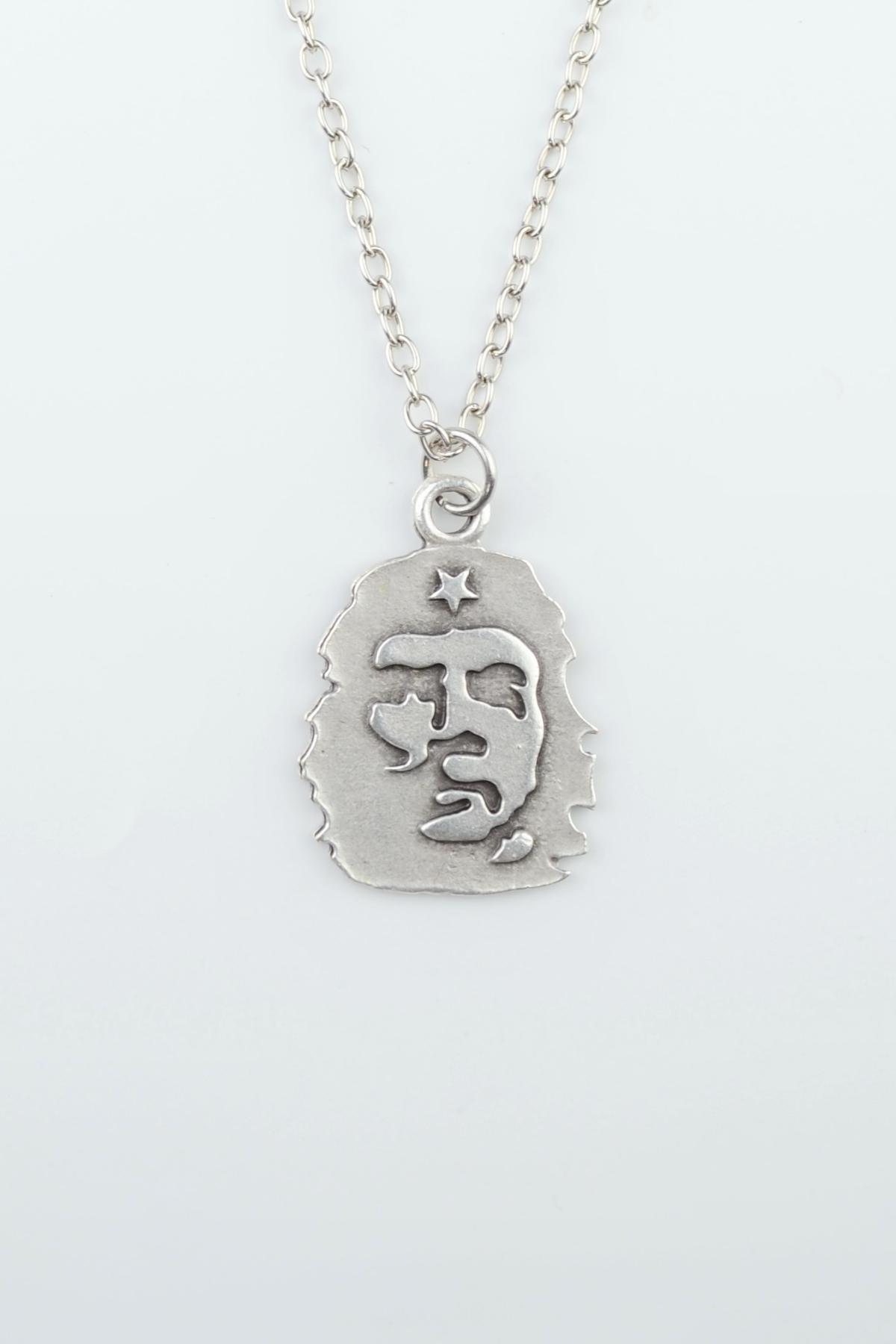 Che Guevara Kolye Gümüş Kaplama Deri İp Kolye Che Guevara Kolye Gümüş Kaplama Deri İp Kolye 1044 60 cm