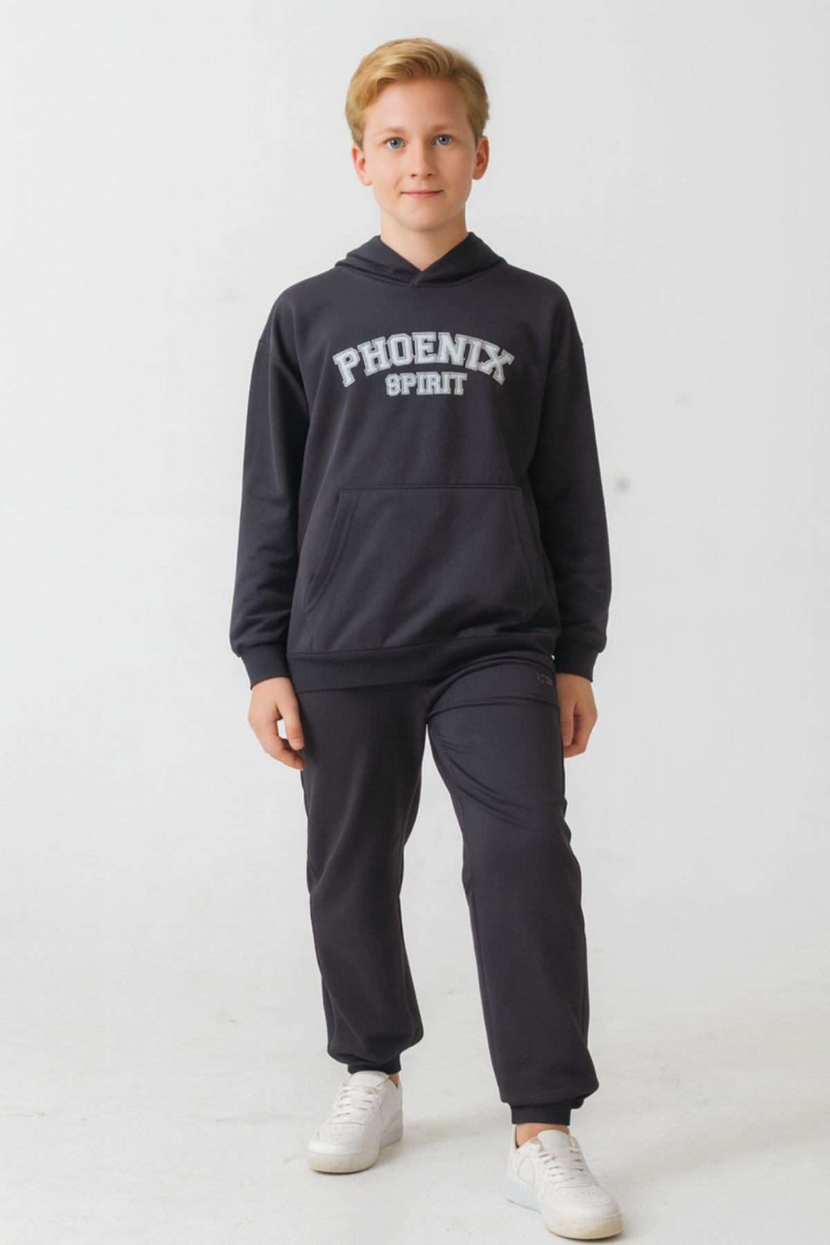 Phoenix Spirit Baskılı Kanguru Cepli Erkek Çocuk Alt Üst Eşofman Takımı Phoenix Spirit Baskılı Kanguru Cepli Erkek Çocuk Alt Üst Eşofman Takımı EC-7870-TK 13-14 Yaş