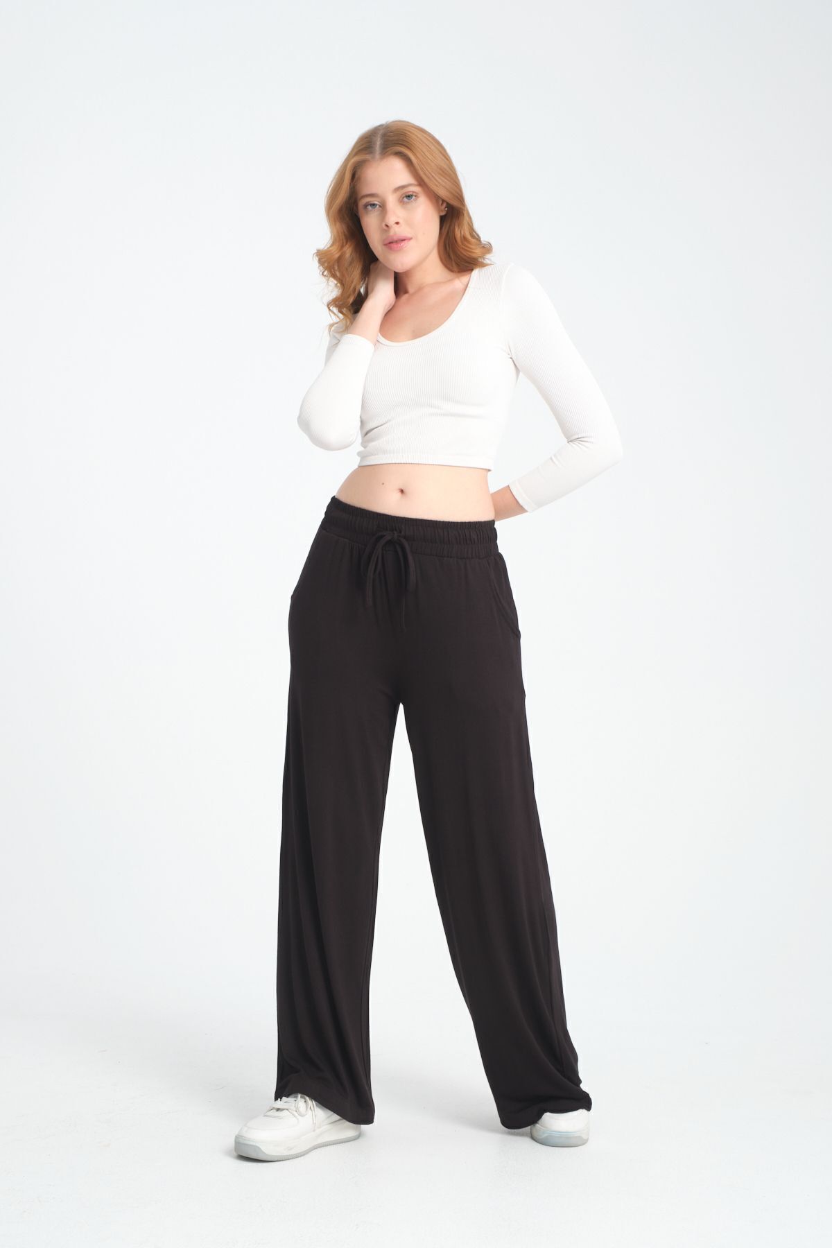 Siyah Viskon Dokuma Bol Paça Pantolon Siyah Viskon Dokuma Bol Paça Pantolon elb629399294926162 5XL