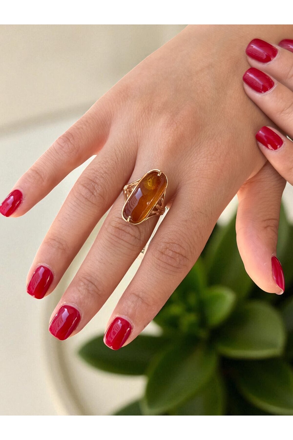 14 AYAR KEHRİBAR TAŞLI ROSE RENGİ TASARIM YÜZÜK 14 AYAR KEHRİBAR TAŞLI ROSE RENGİ TASARIM YÜZÜK UTKUYZ982 18