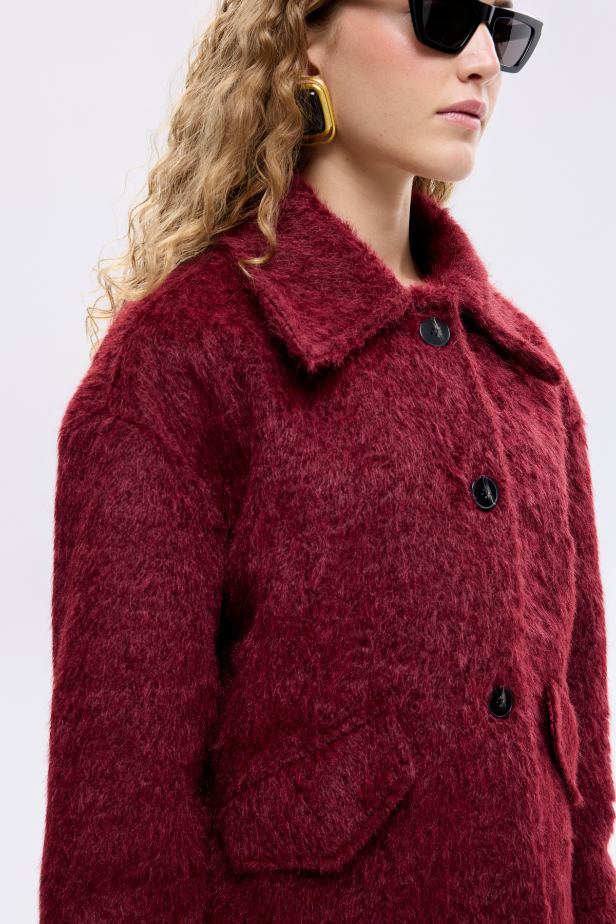 Gömlek Yaka Düğmeli Tüylü Ceket Mürdüm Gömlek Yaka Düğmeli Tüylü Ceket Mürdüm 26KCKT00887 L