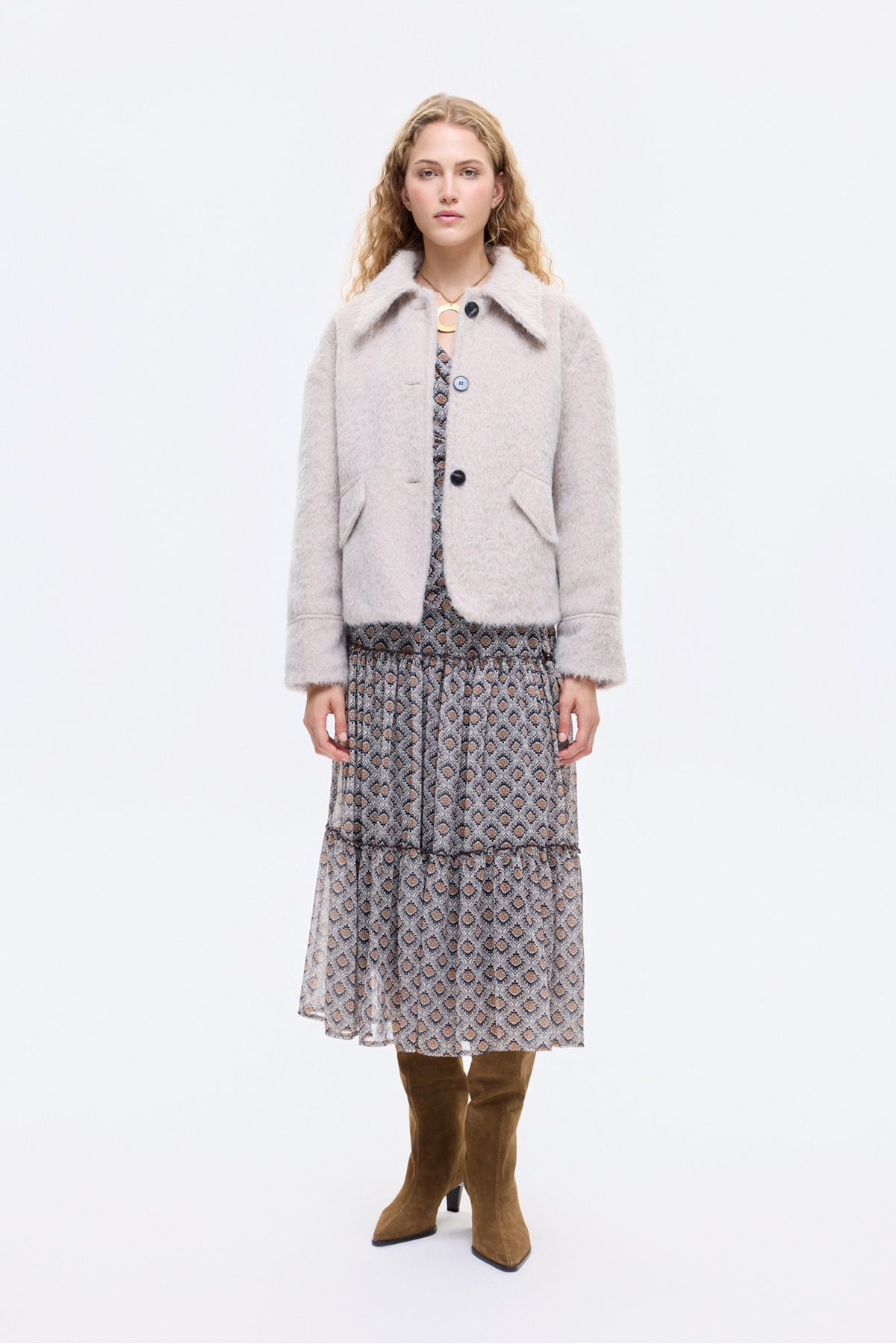 Gömlek Yaka Düğmeli Tüylü Ceket Bej Gömlek Yaka Düğmeli Tüylü Ceket Bej 26KCKT00887 L