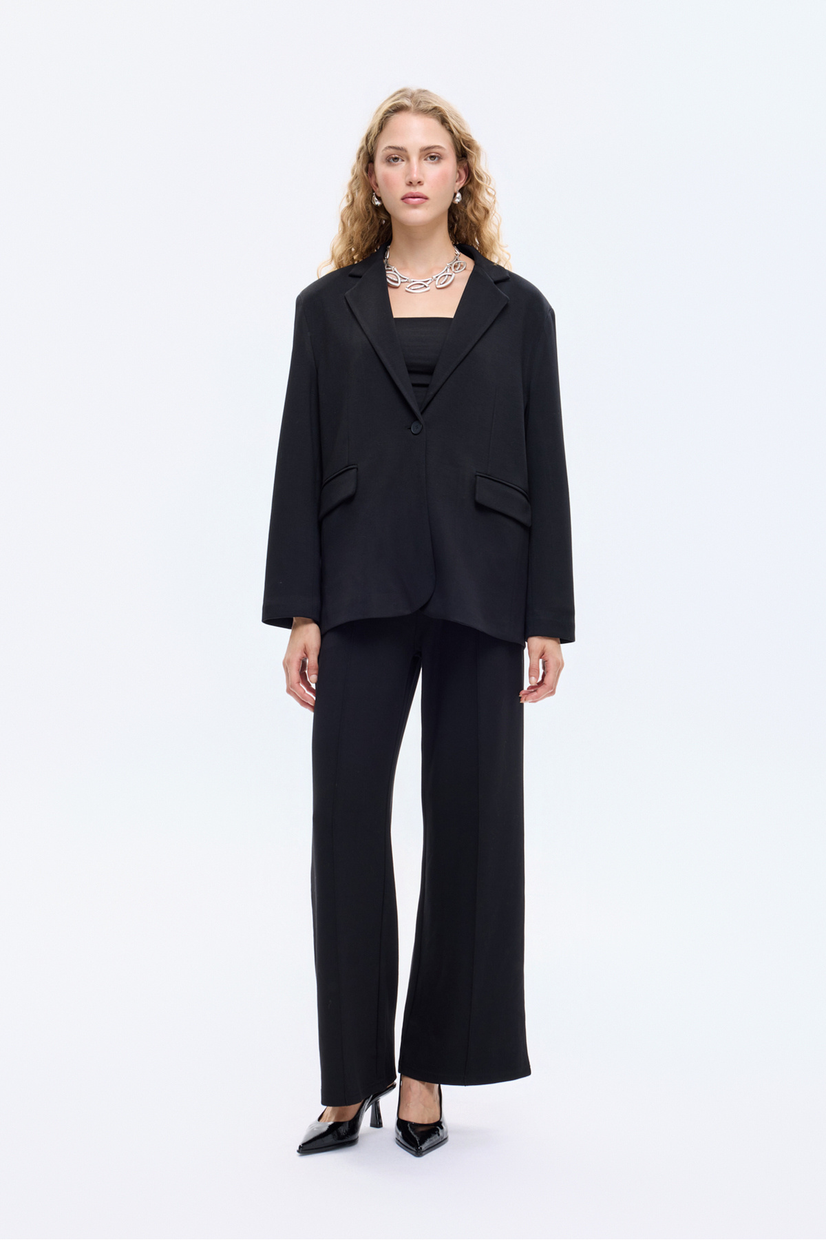Tek Düğmeli Yumuşak Dokulu Oversize Blazer Ceket Siyah Tek Düğmeli Yumuşak Dokulu Oversize Blazer Ceket Siyah 26KCKT00822 L