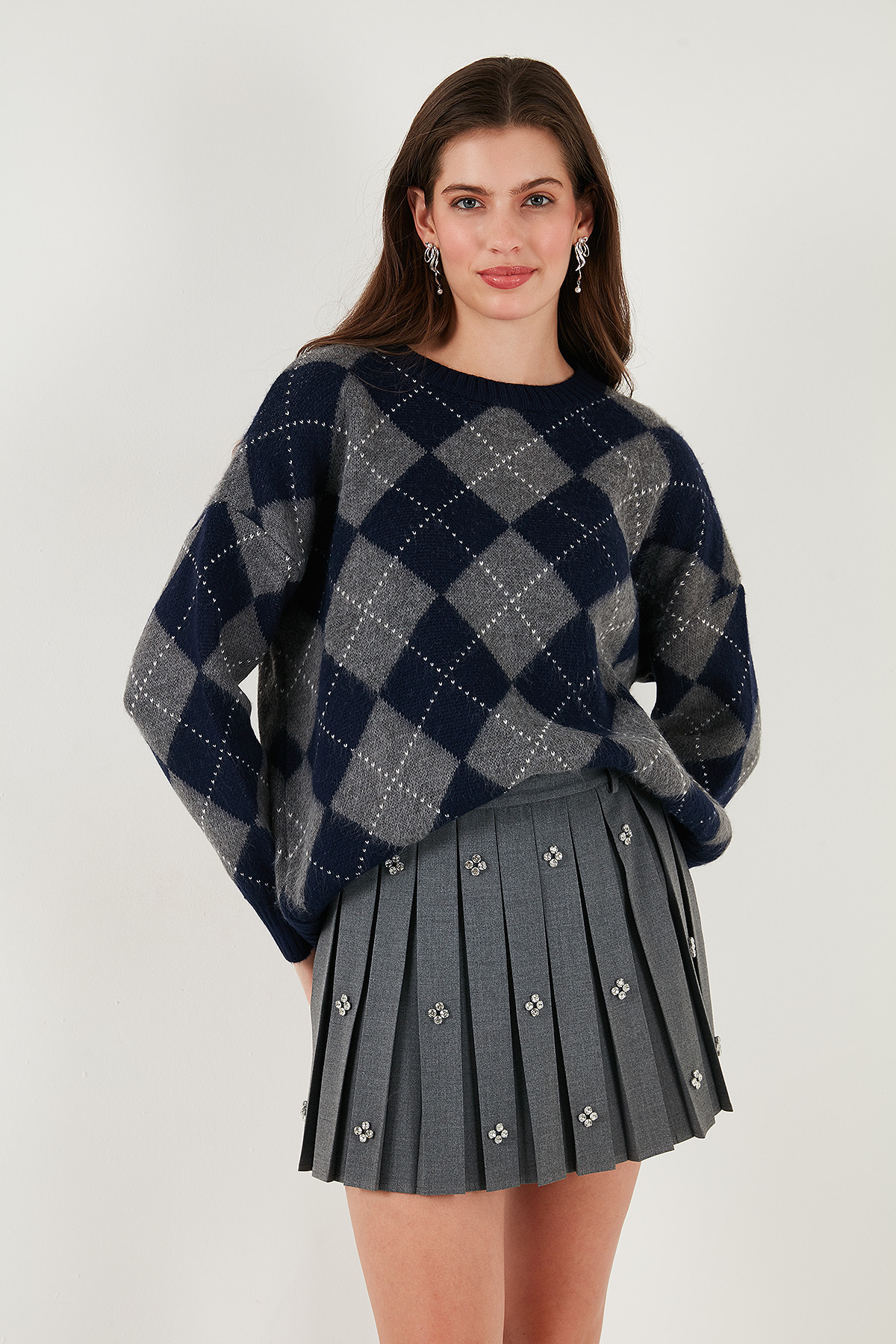Oversize Fit Bisiklet Yaka Baklava Desenli Kazak KAZAK 4615579 Oversize Fit Bisiklet Yaka Baklava Desenli Kazak KAZAK 4615579 Standart